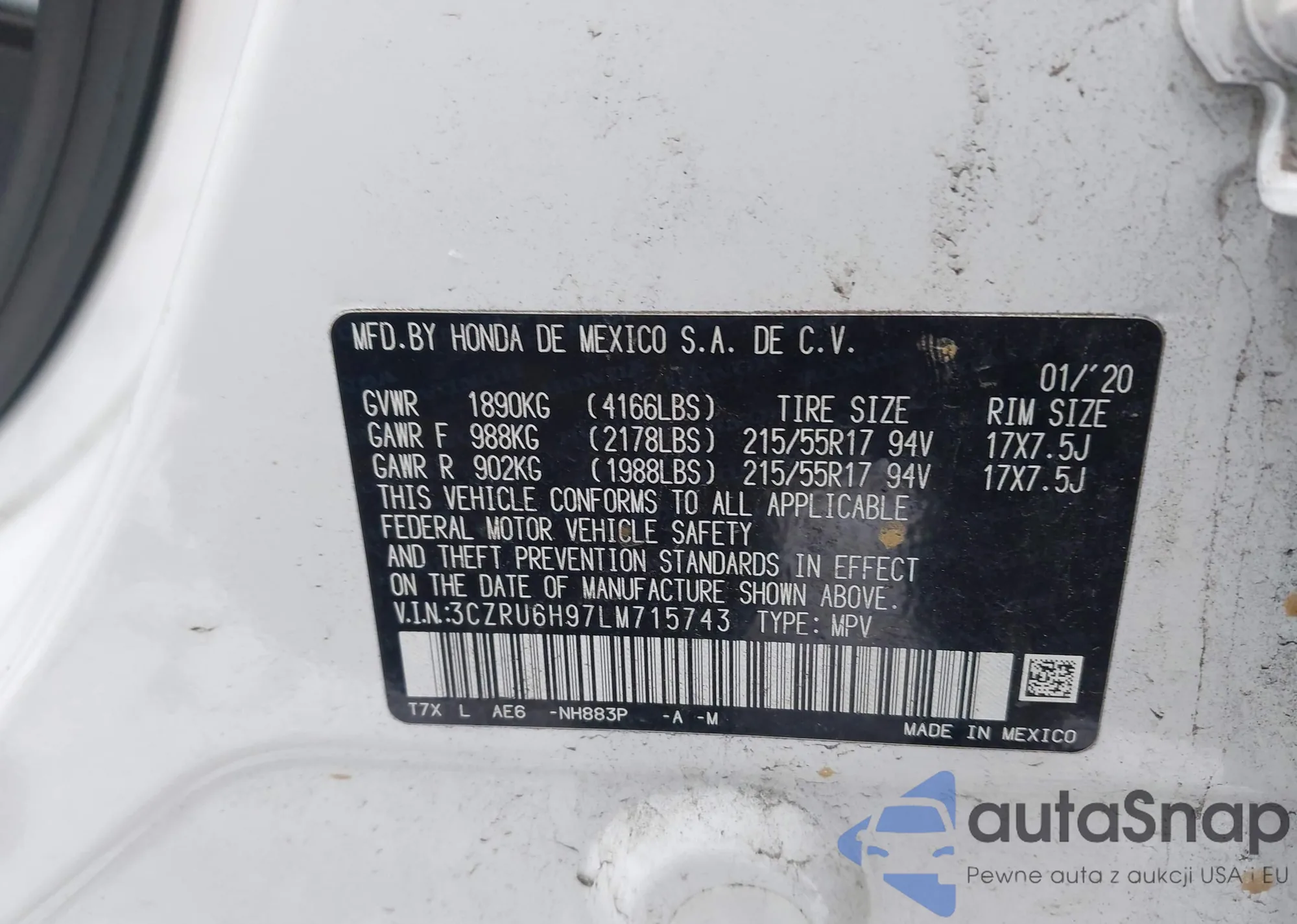 • VIN 3CZRU6H97LM715743