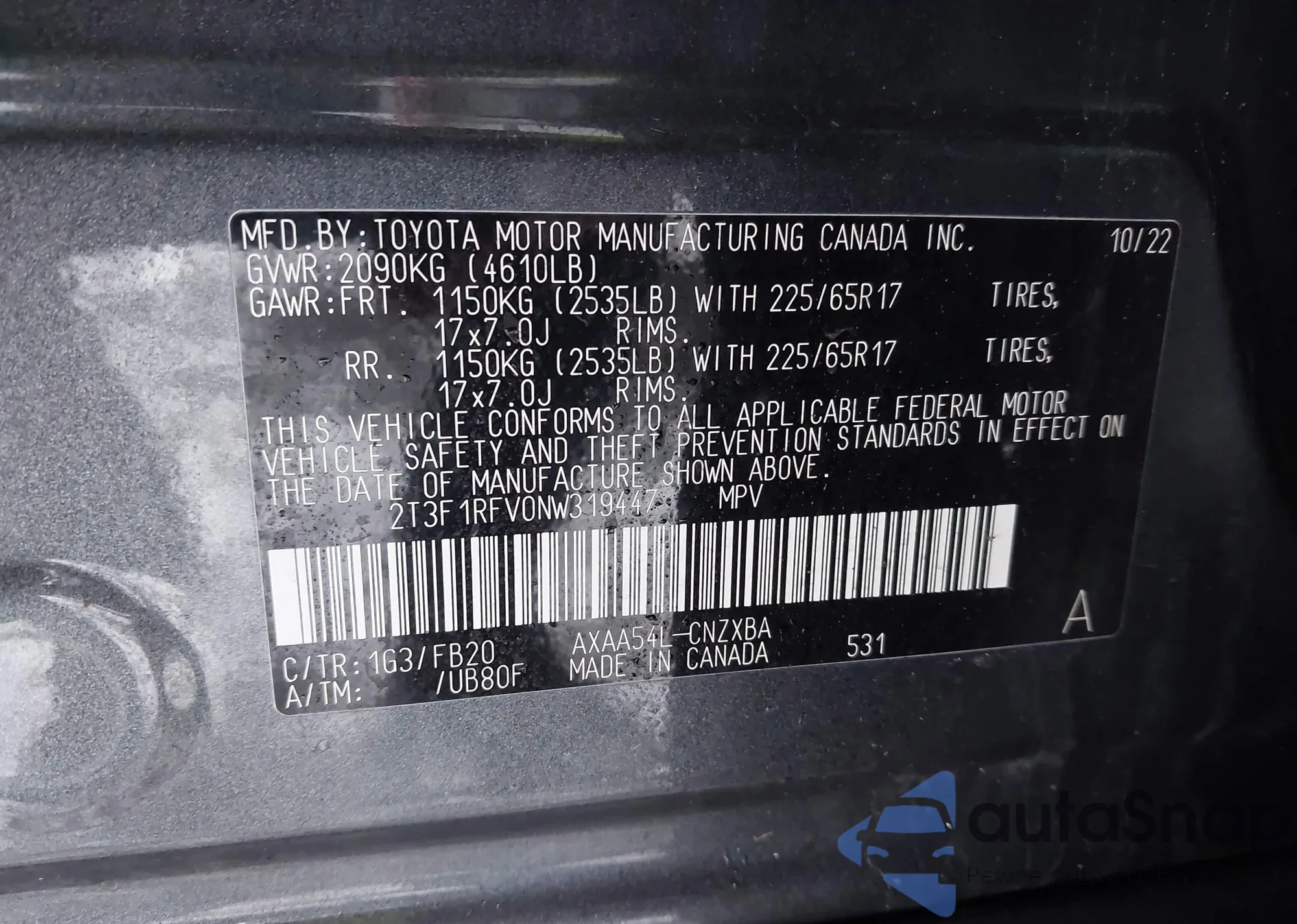 LOT: 43976735 VIN: 2T1CF22P43C610690