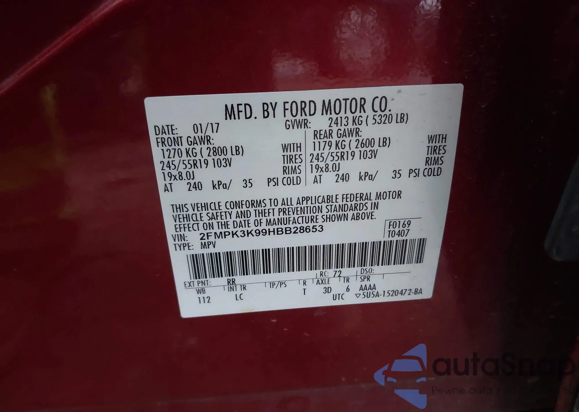 • VIN 2FMPK3K99HBB28653