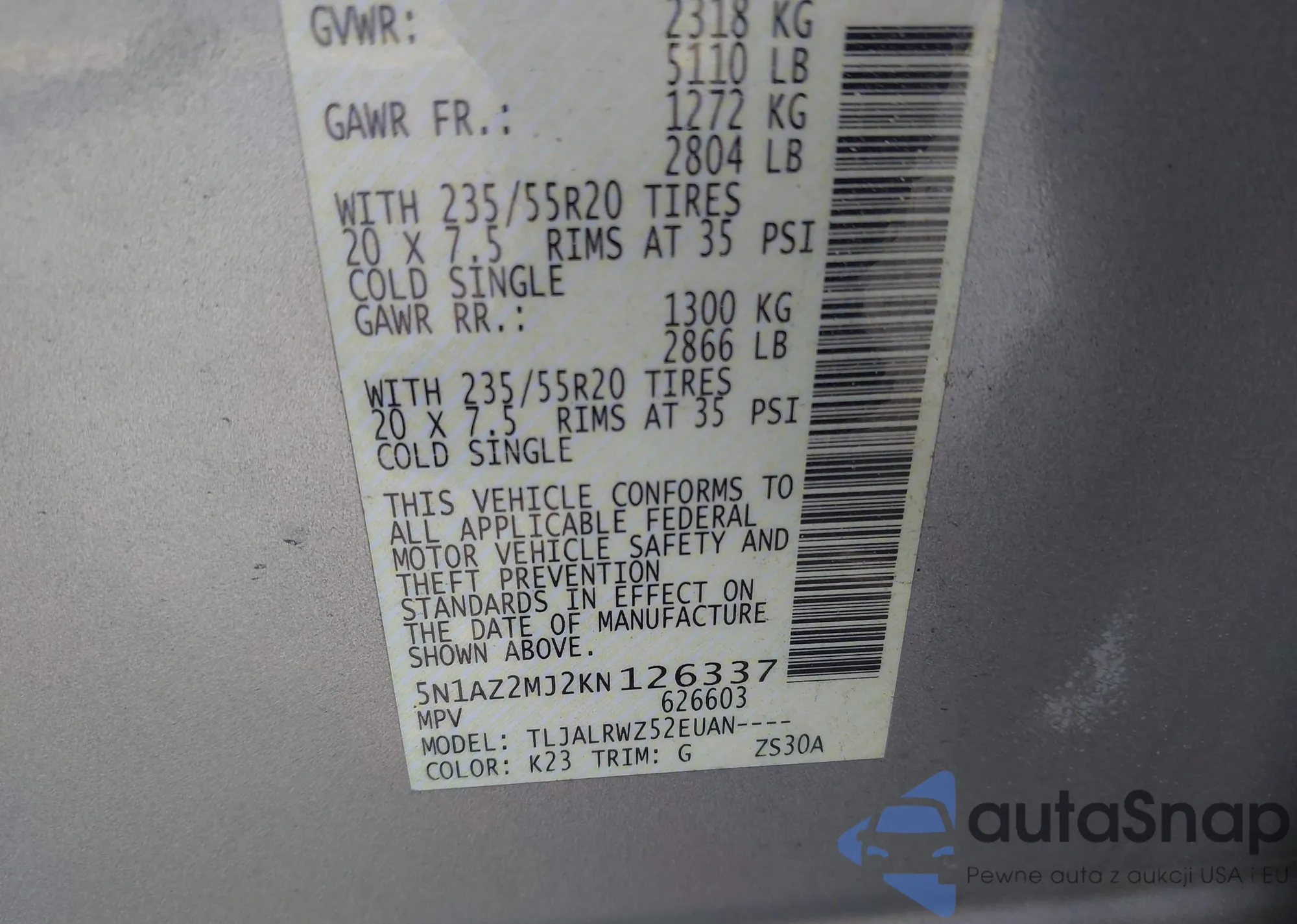 • VIN 5N1AZ2MJ2KN126337