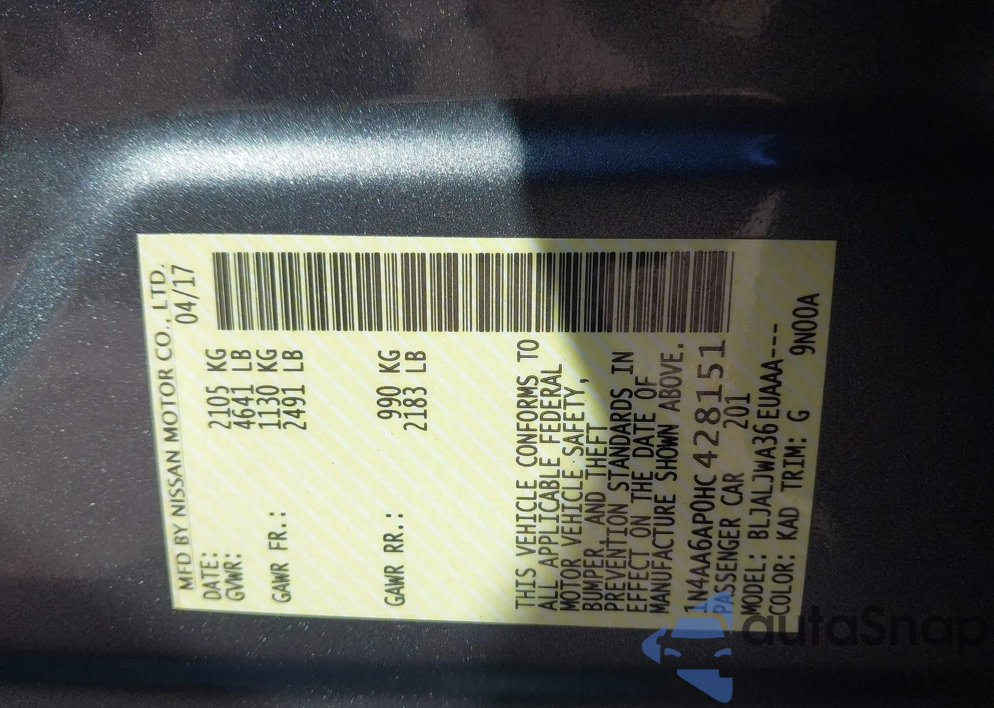 LOT: 43471969 VIN: 1N4AA6AP0HC428151