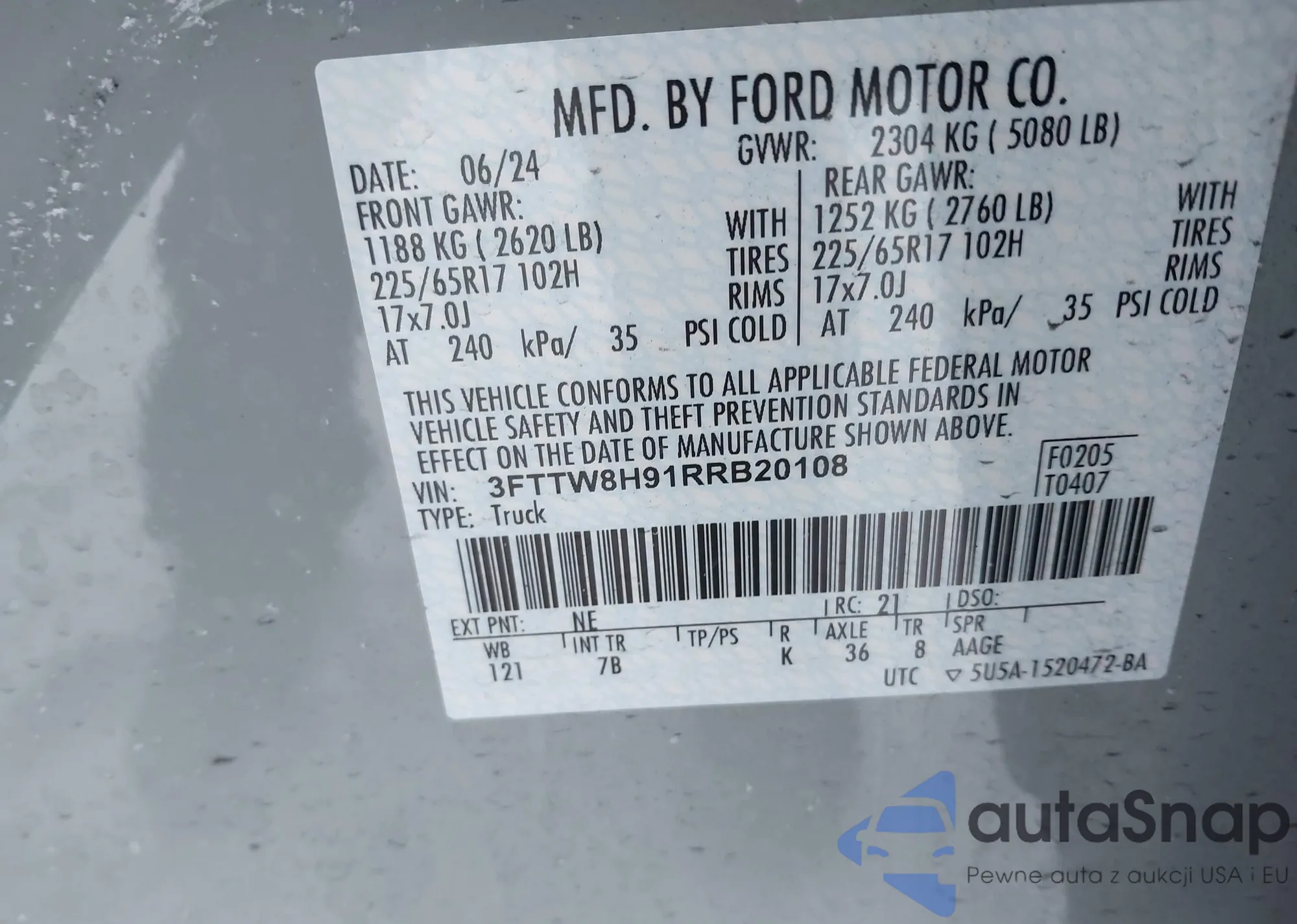 • VIN 3FTTW8H91RRB20108
