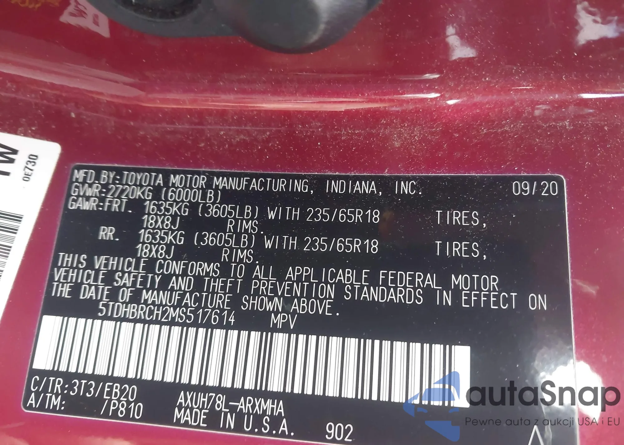 LOT: 44257021 VIN: 5TDBA22C04S022964