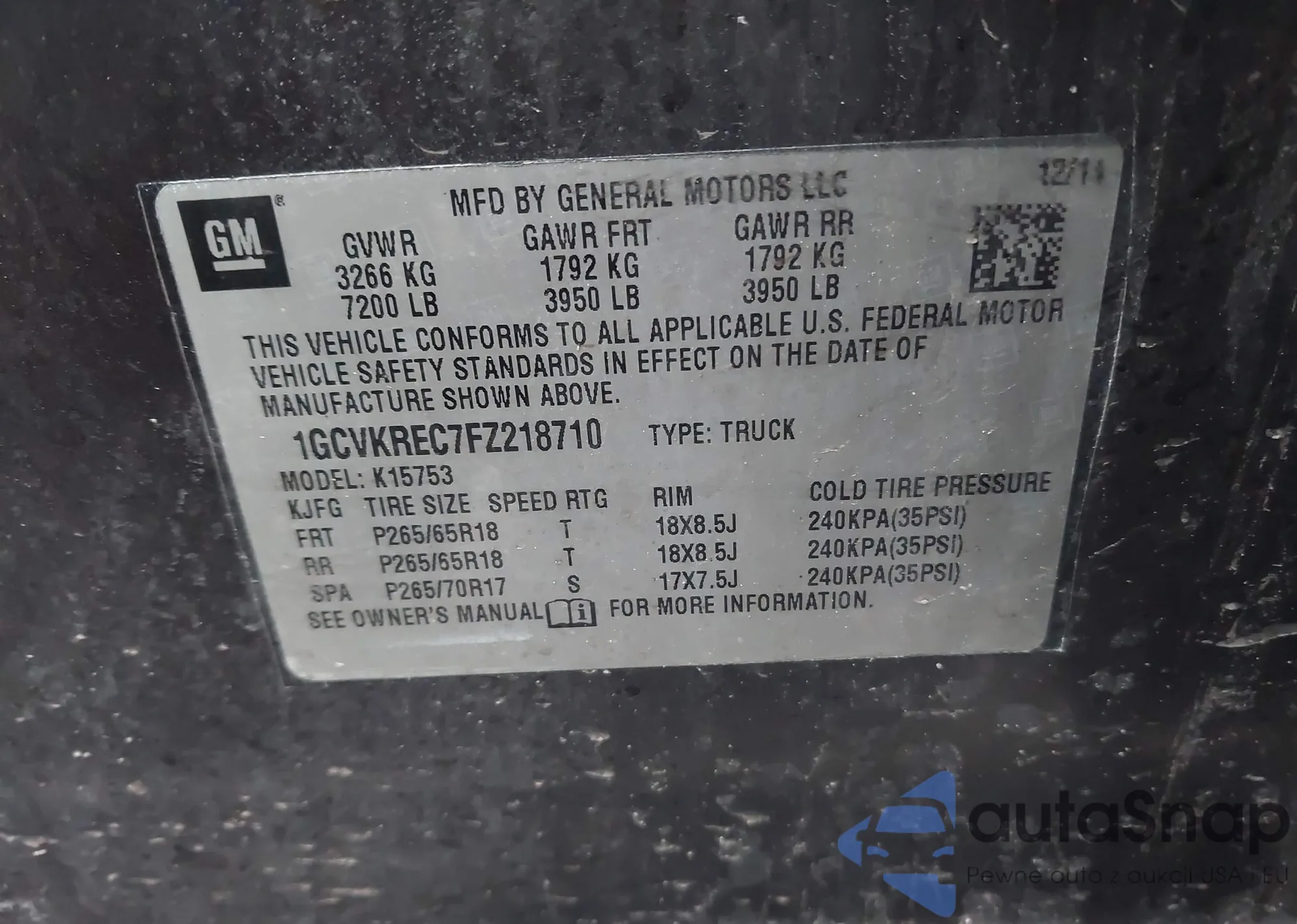 • VIN 2GNFLCEKXC6223789