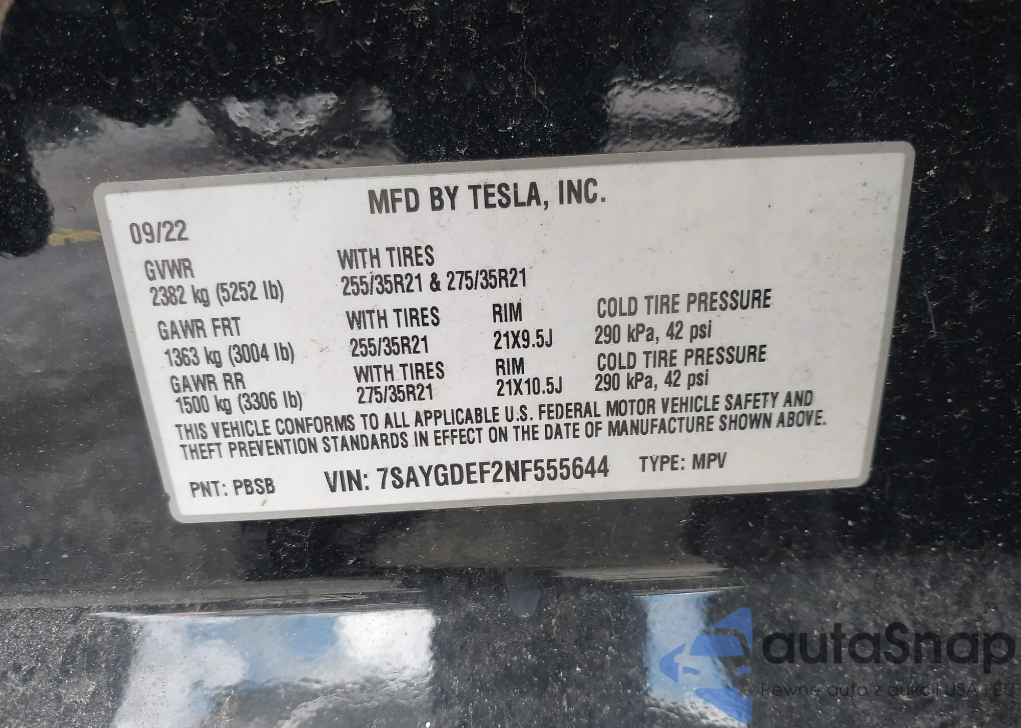 • VIN 7SAYGDEF2NF555644