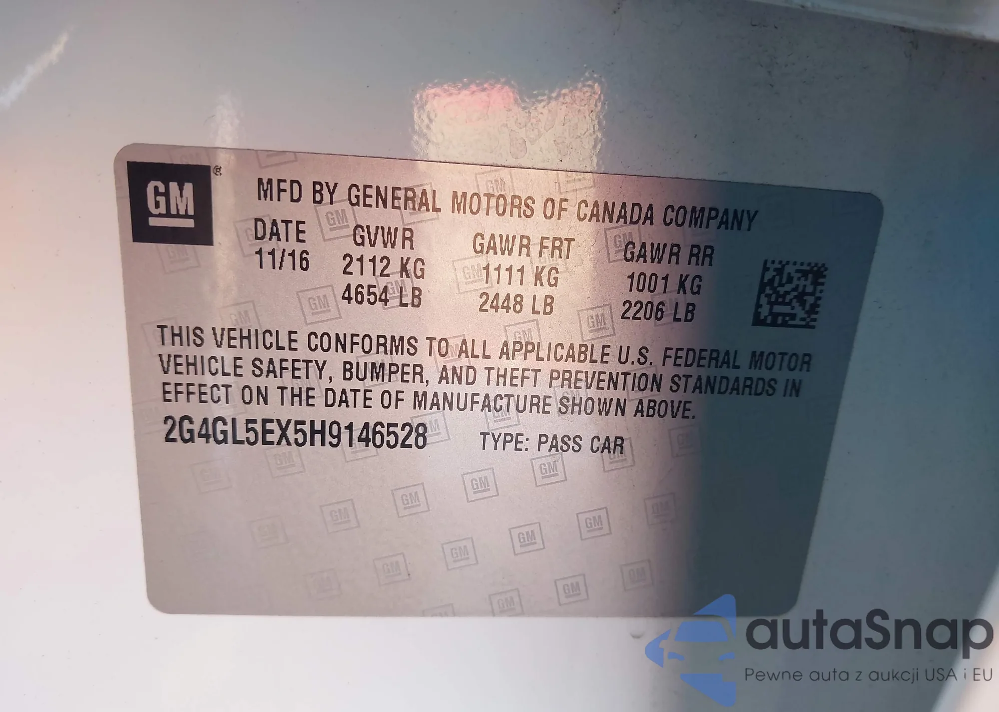 LOT: 43987524 VIN: 2G11Y5SL2E9109261