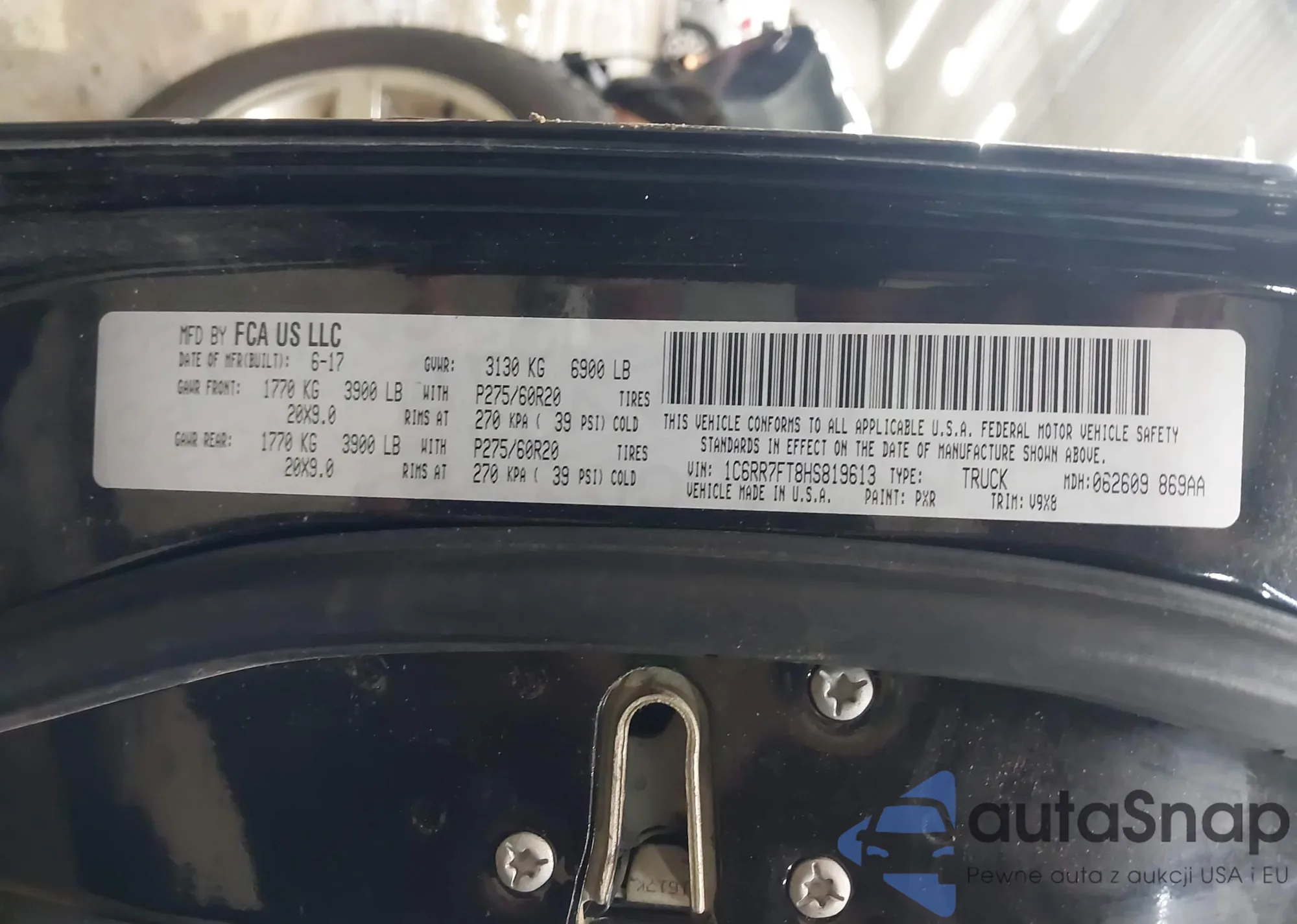 LOT: 43695102 VIN: 1C6RR7FT8HS819613