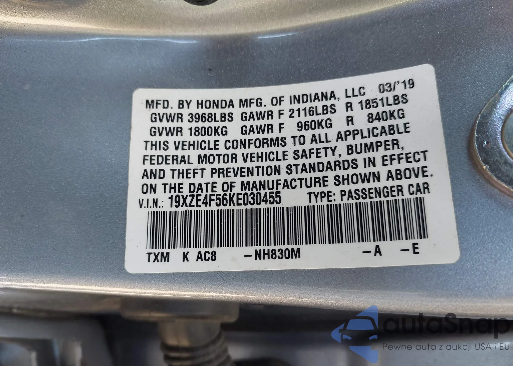 • VIN 5J8TC2H39ML013818