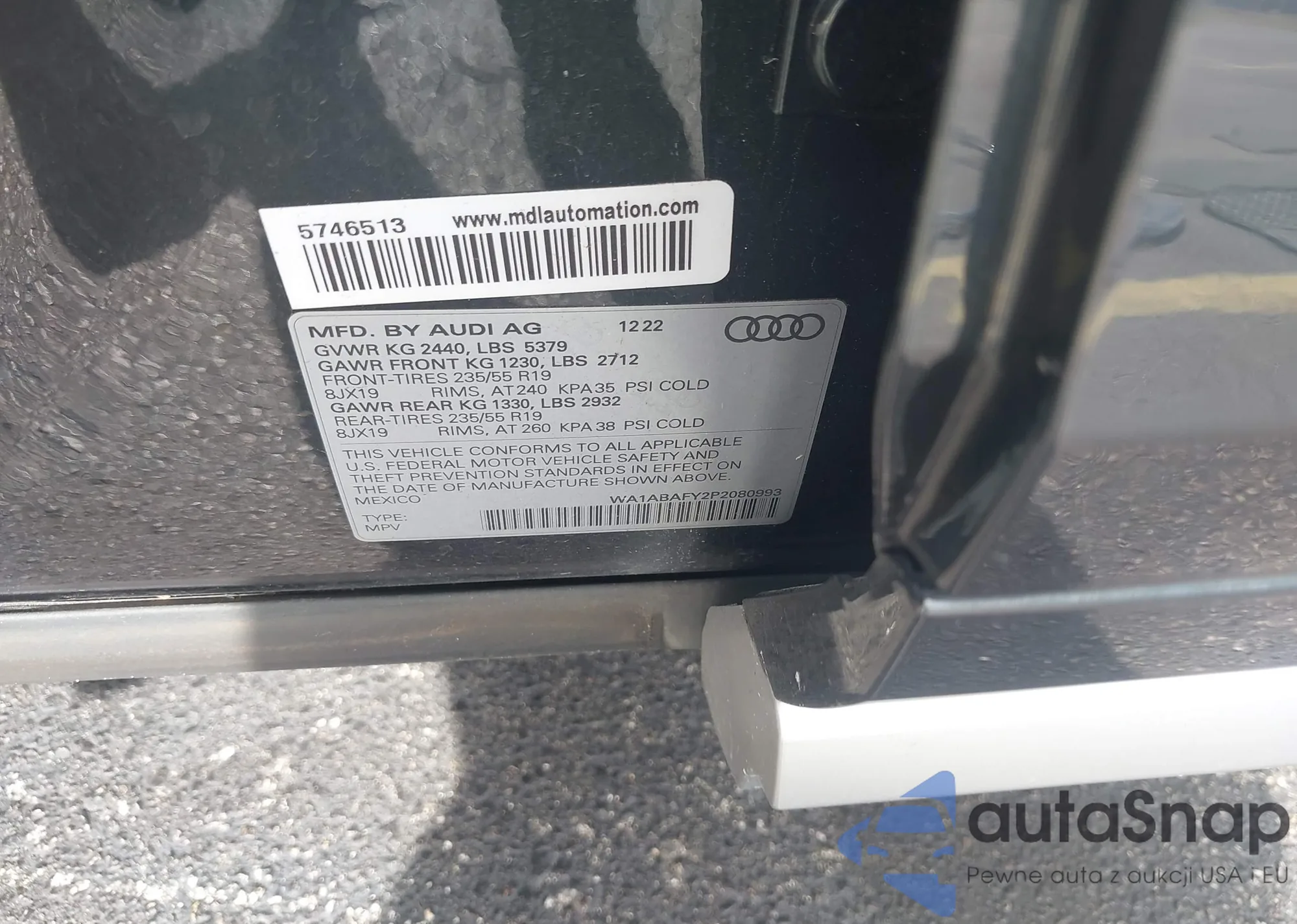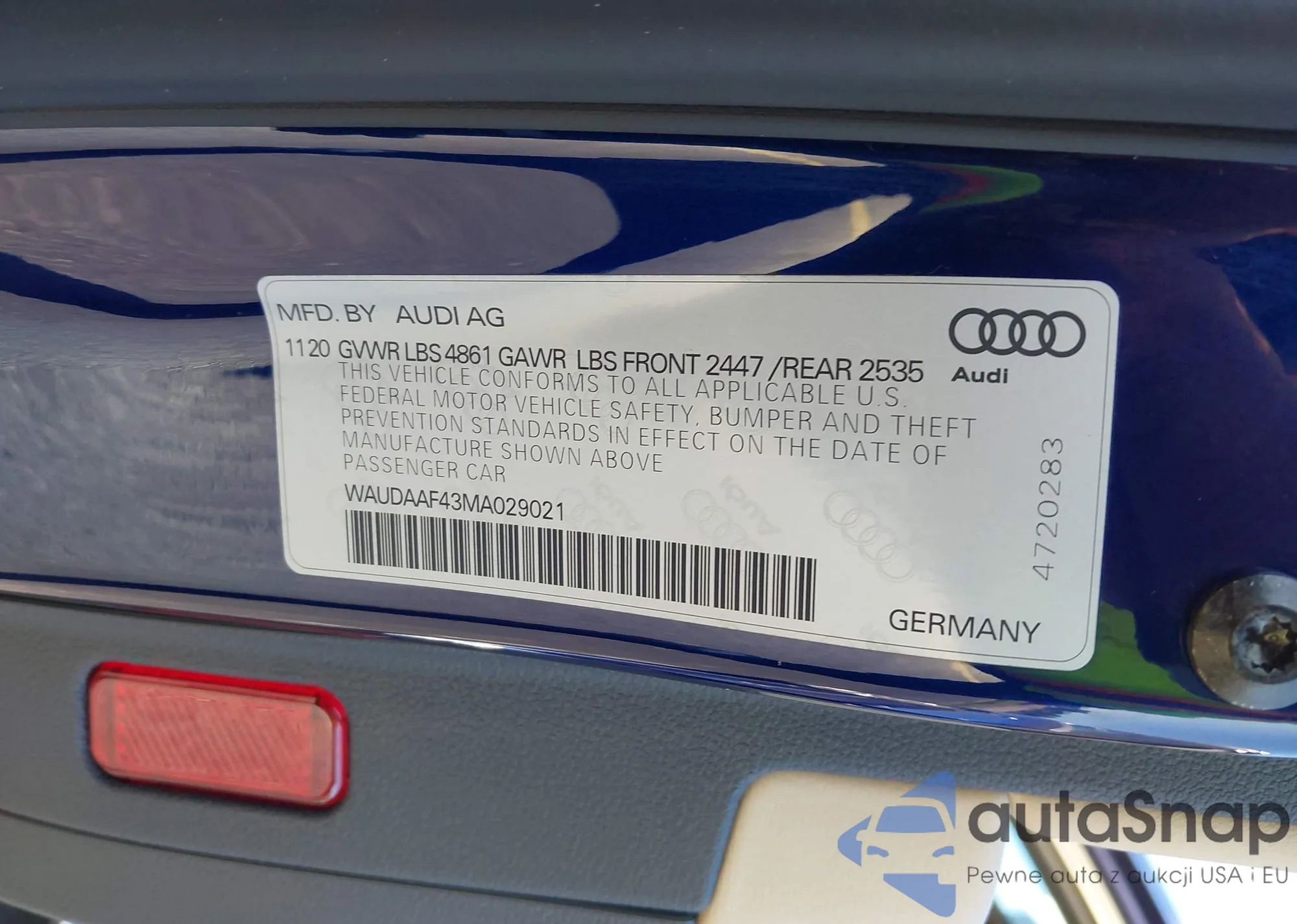 LOT: 43816372 VIN: WAUDAAF43MA029021