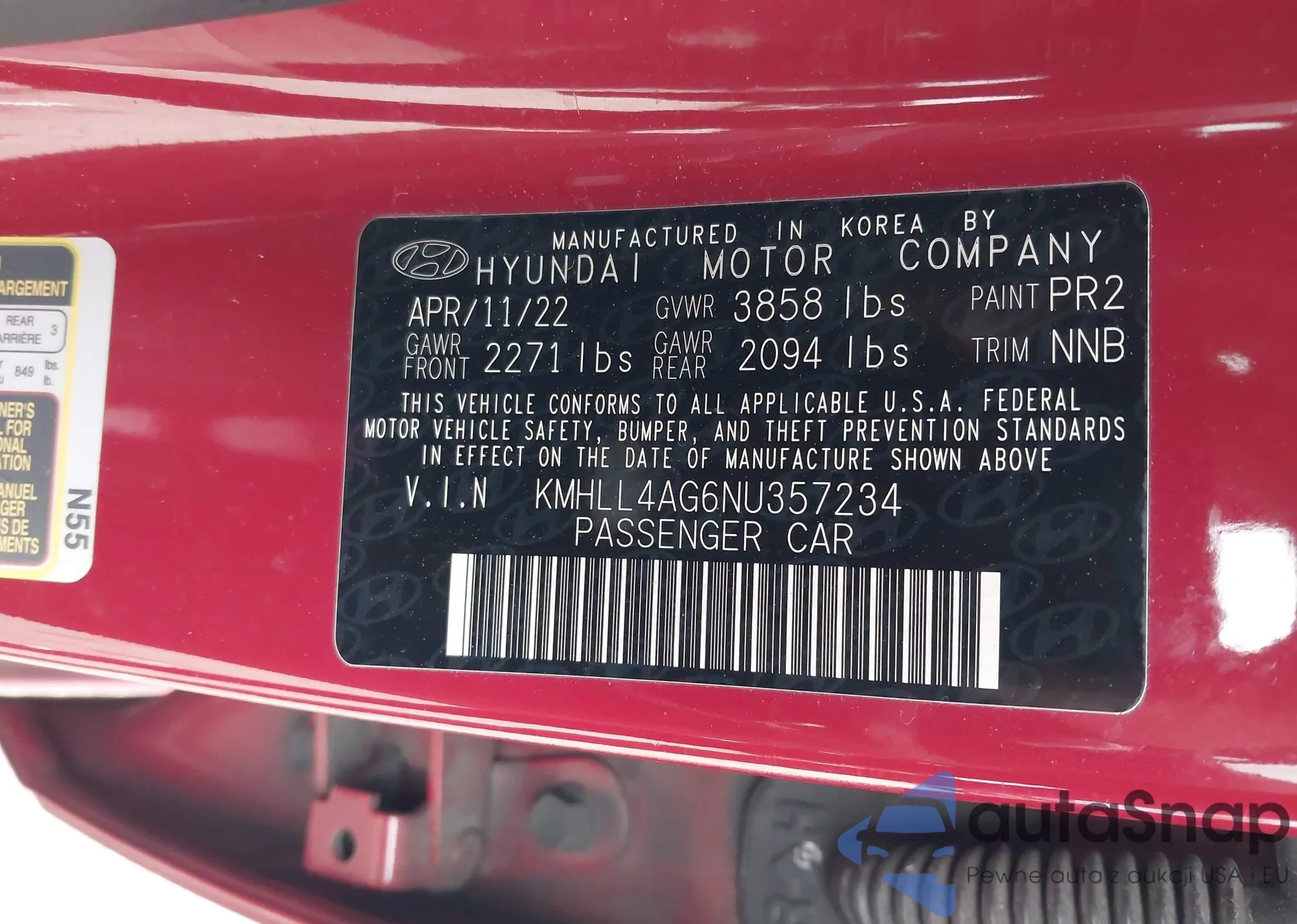 • VIN KMHLL4AG6NU357234