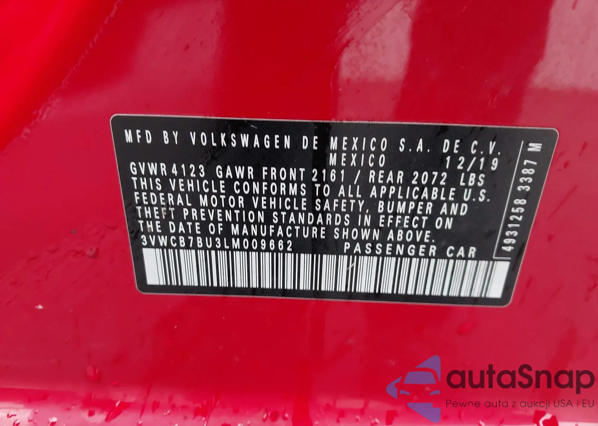 • VIN 3VWCB7BU3LM009662