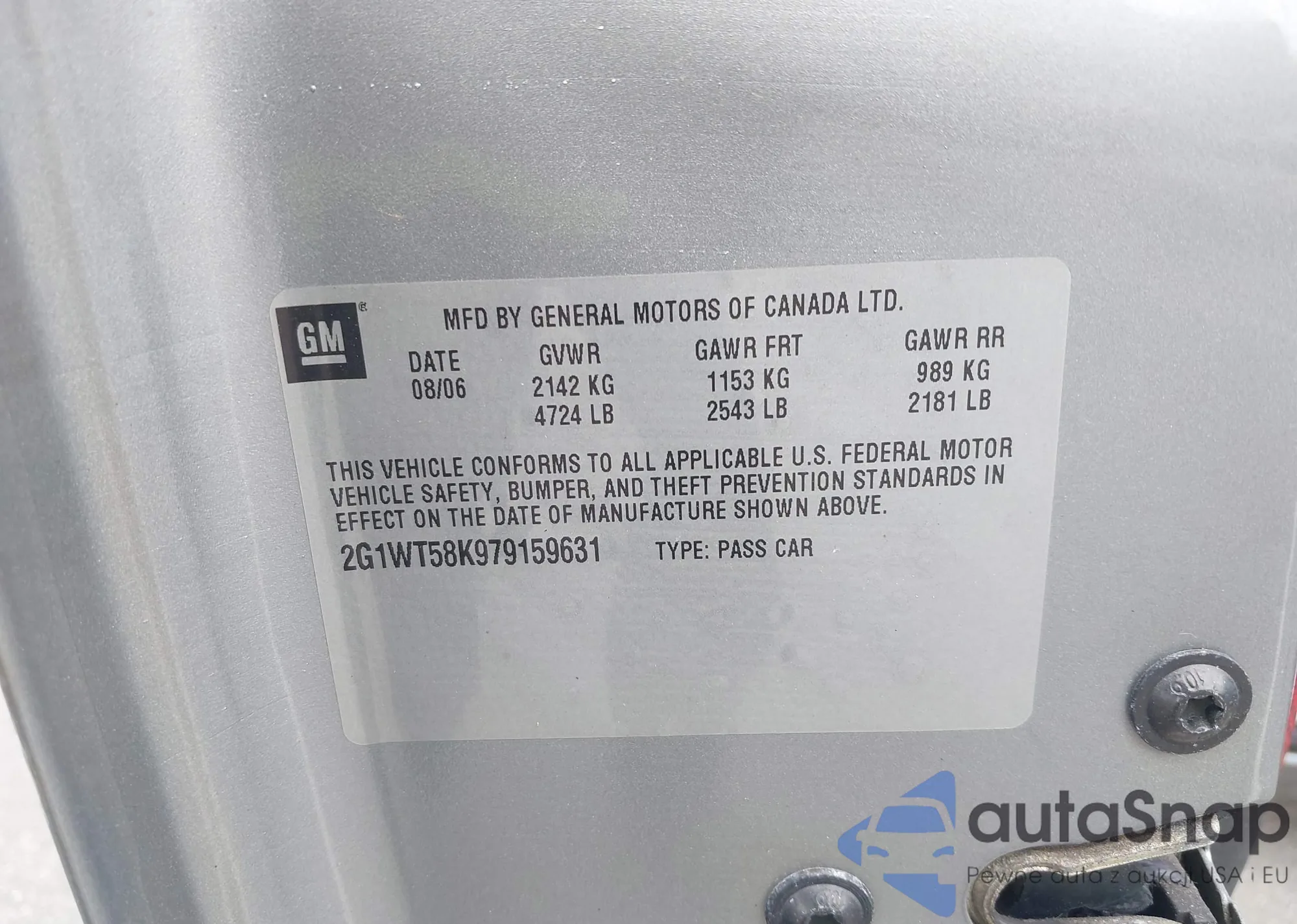 LOT: 42975838 VIN: 2G1WT58K979159631
