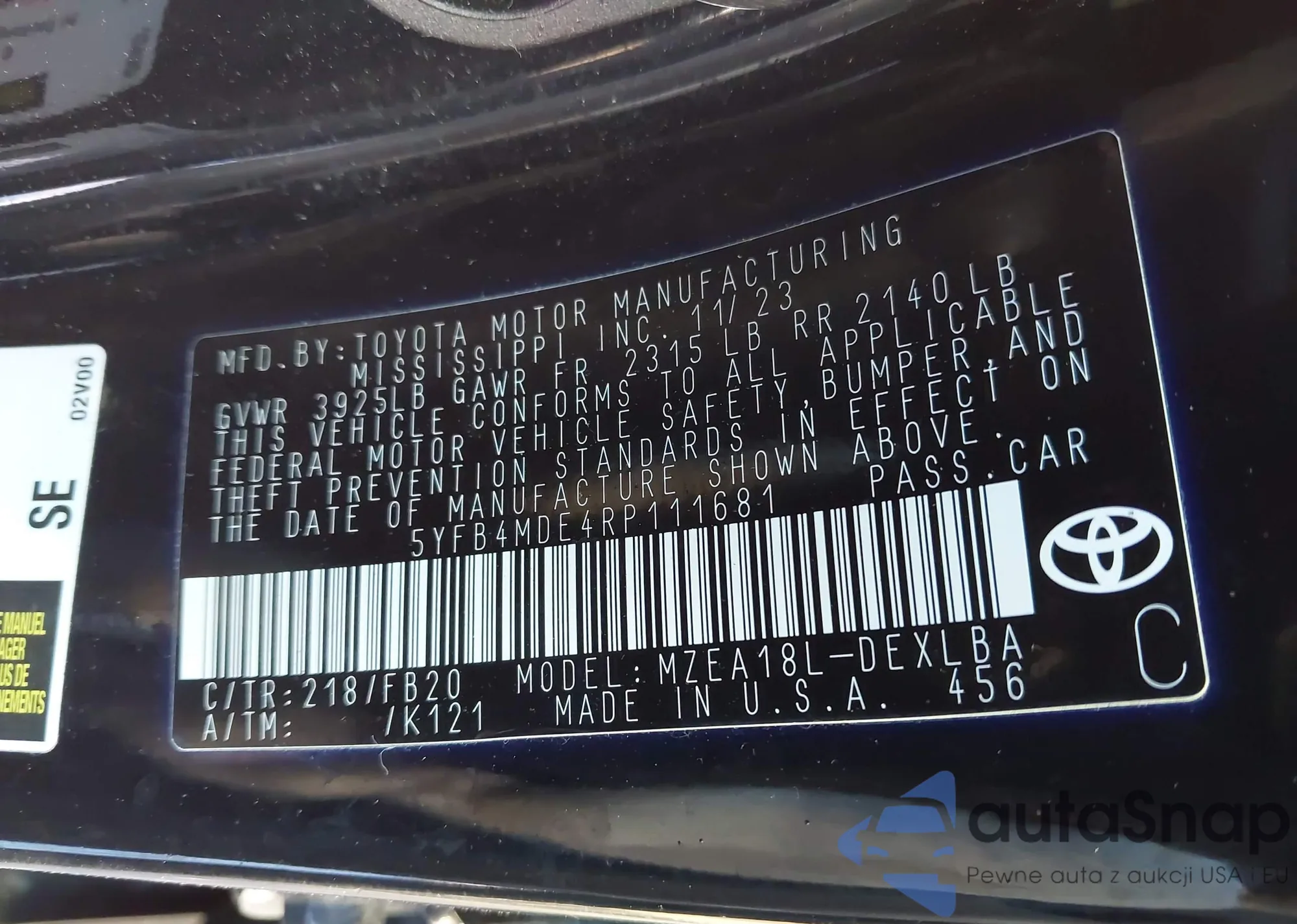 • Lot number 44200939
