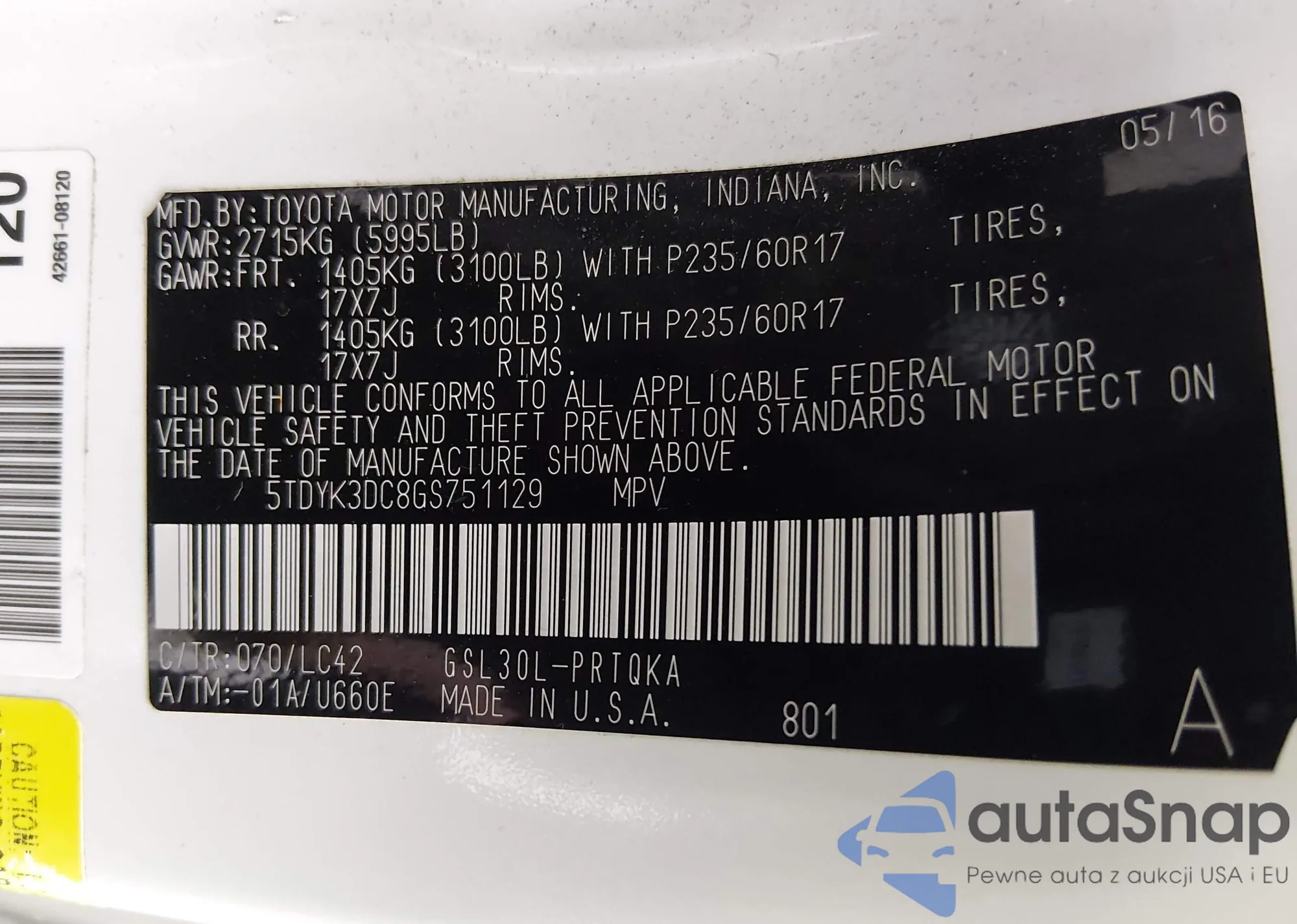 • VIN 5TDYK3DC8GS751129