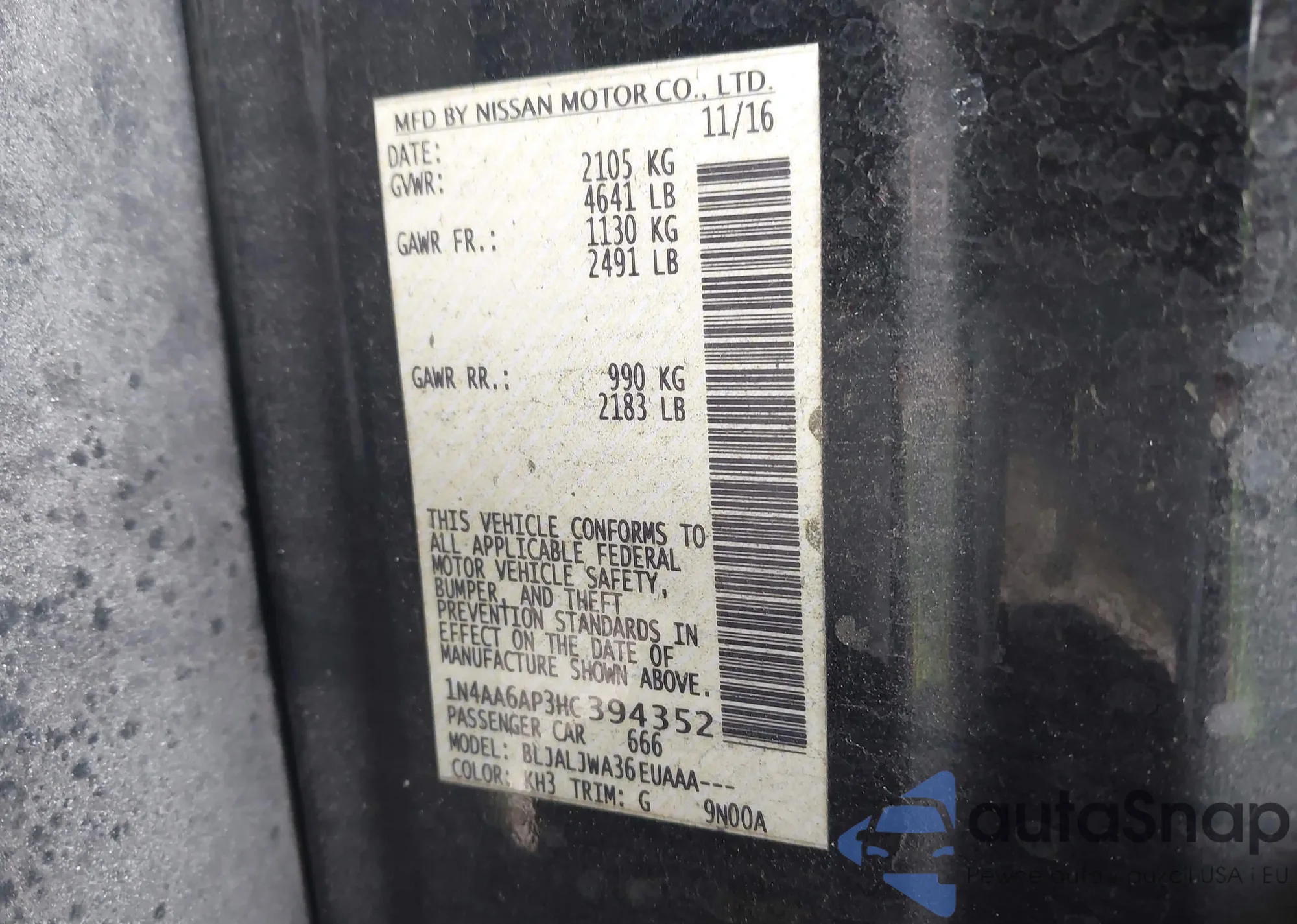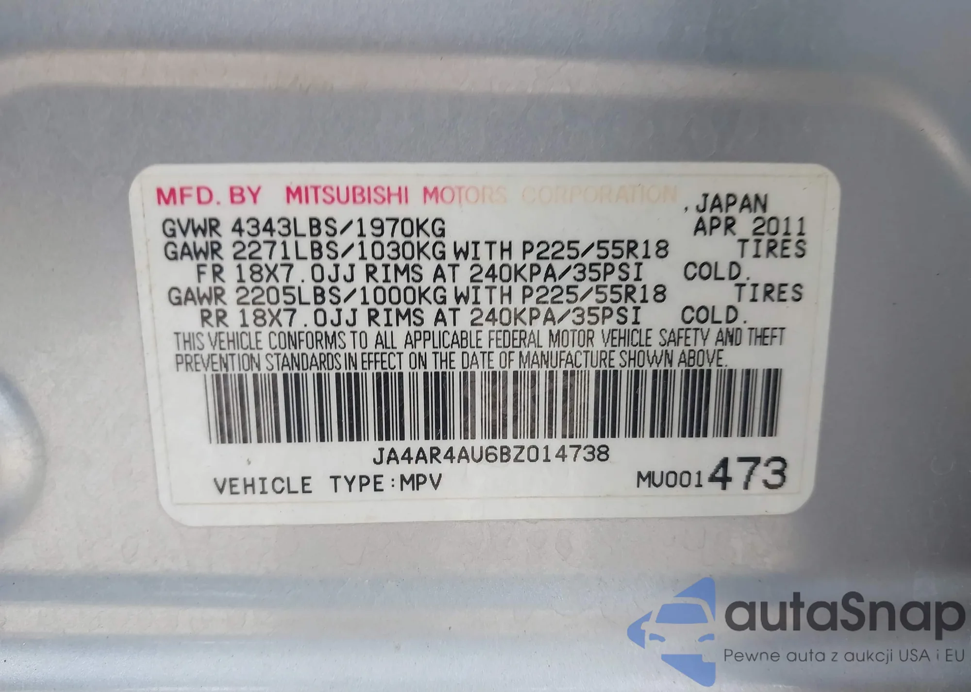 • VIN JA4AR4AU6BZ014738