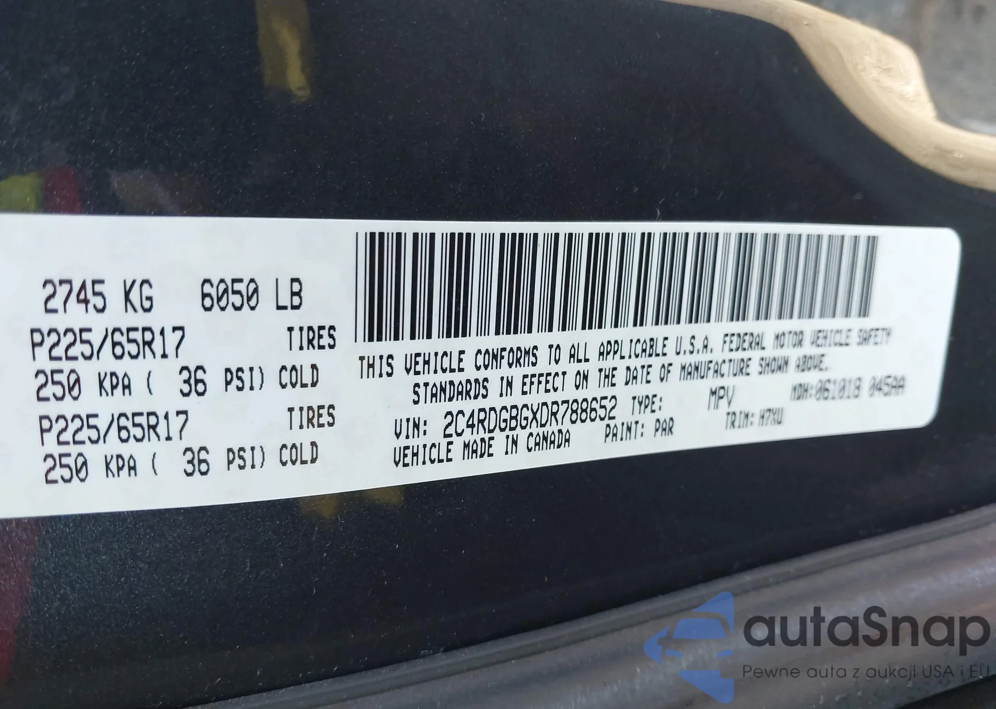 • VIN 2C4RDGBGXDR788652