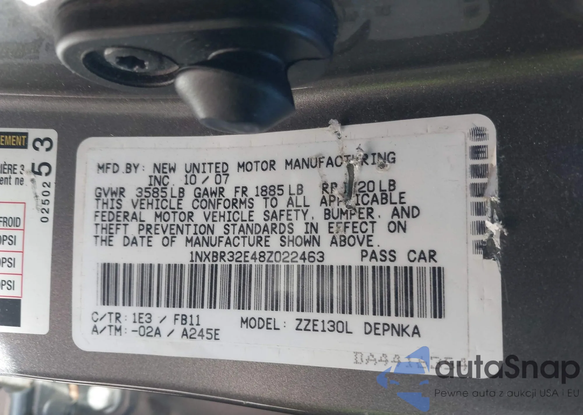 • VIN 1NXBR32E48Z022463