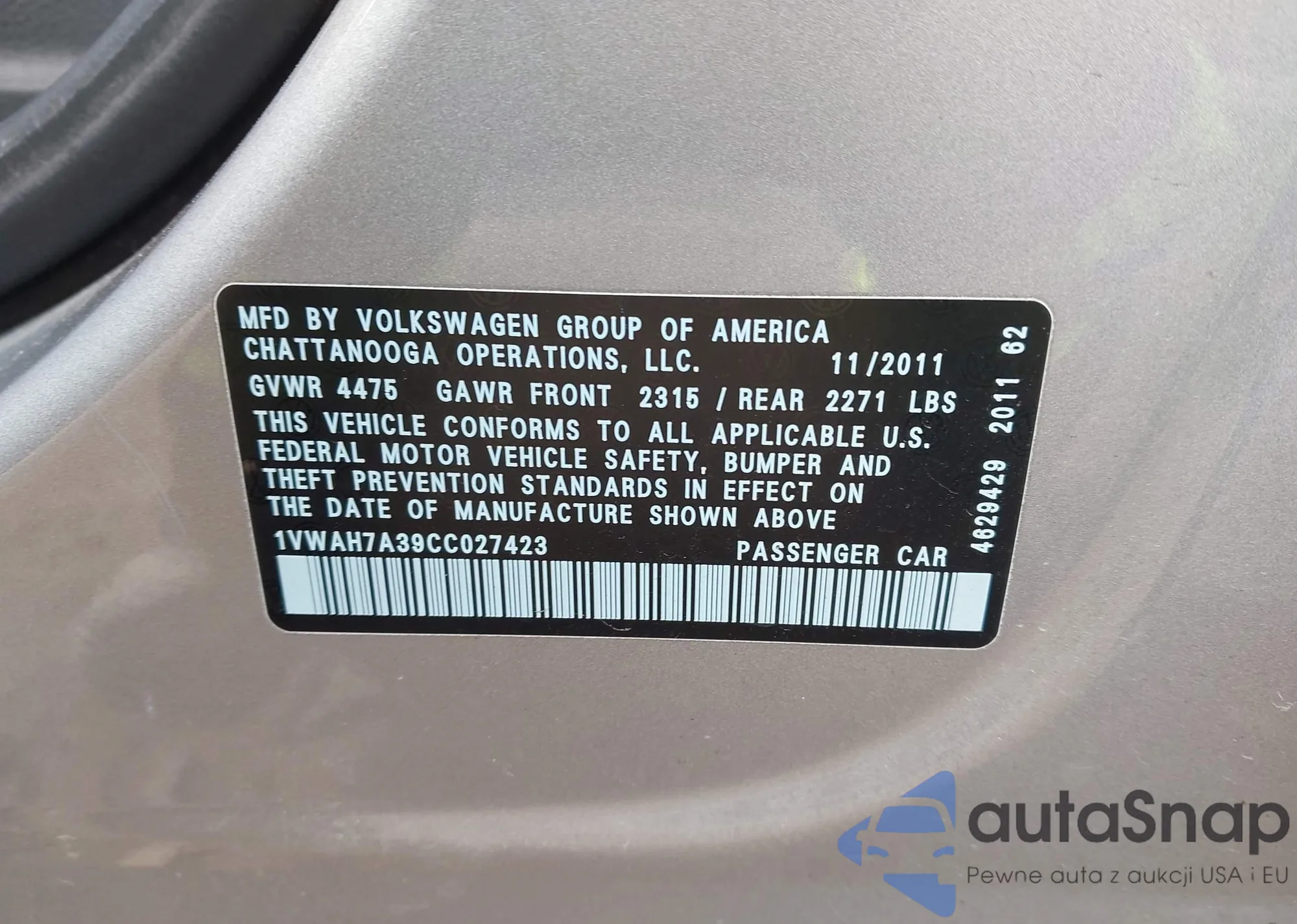 • VIN 1VWAH7A39CC027423