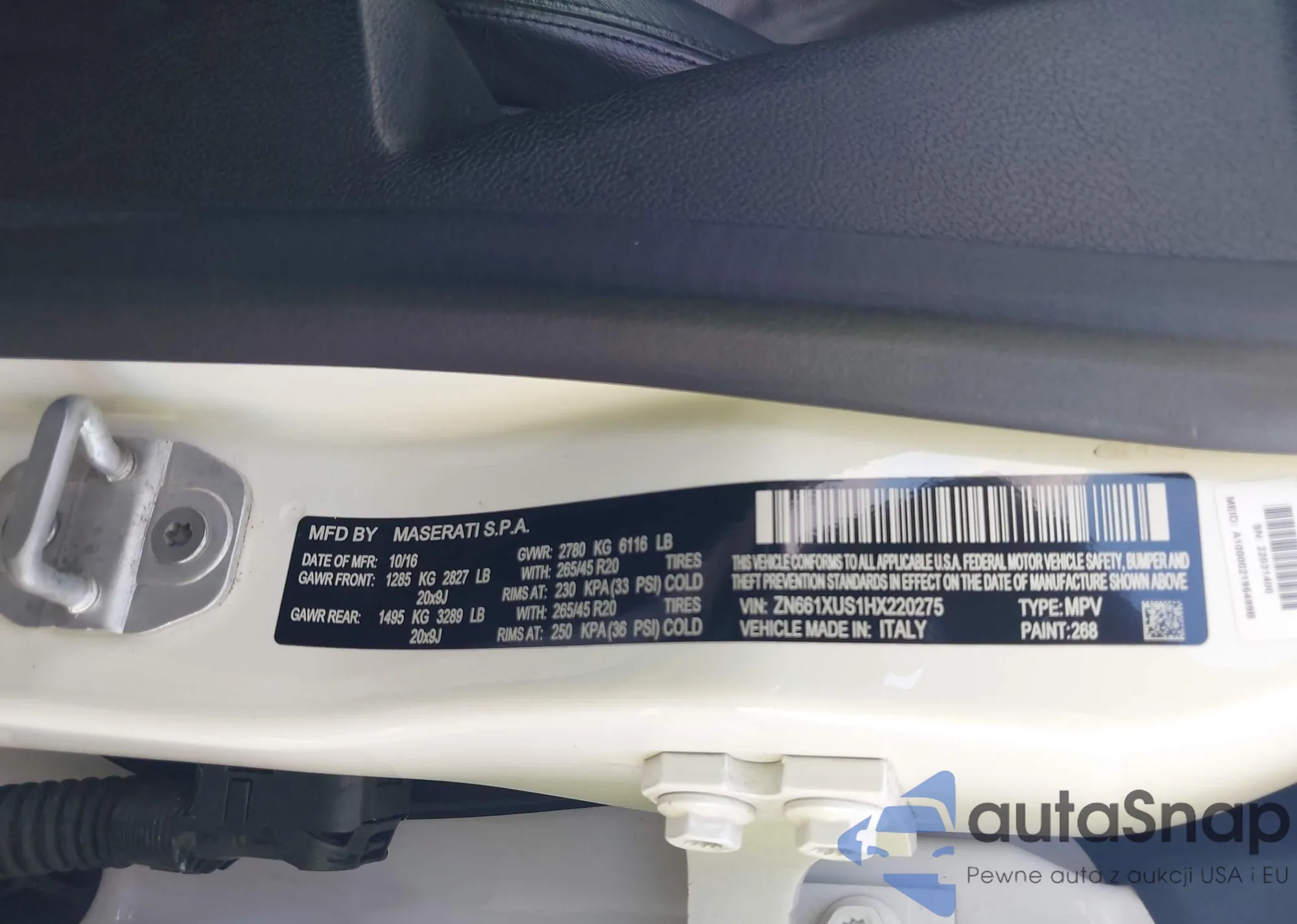 LOT: 43992144 VIN: ZN661XUS1HX220275