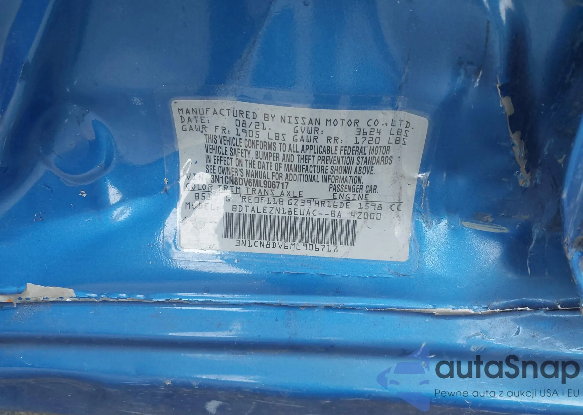 • VIN 3N1CN8DV6ML906717