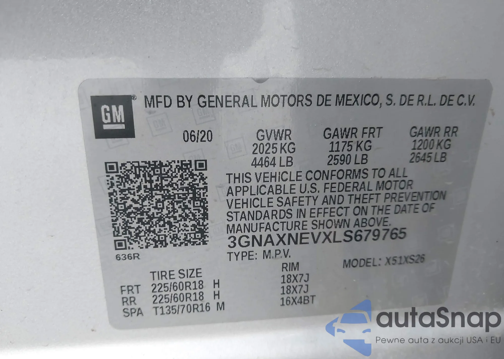 LOT: 43817166 VIN: 3GNAXNEVXLS679765