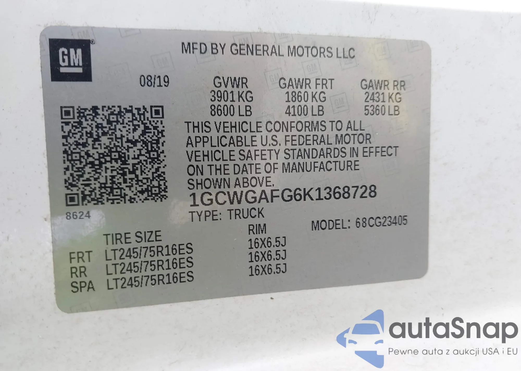 • VIN 5TFCZ5AN7KX191064