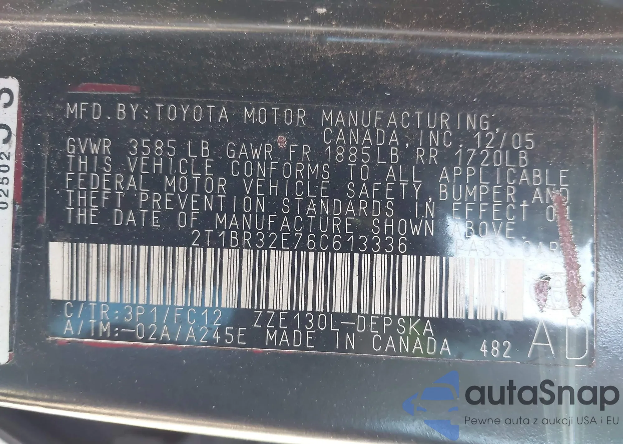 LOT: 43881346 VIN: 1NXBR32E63Z157193