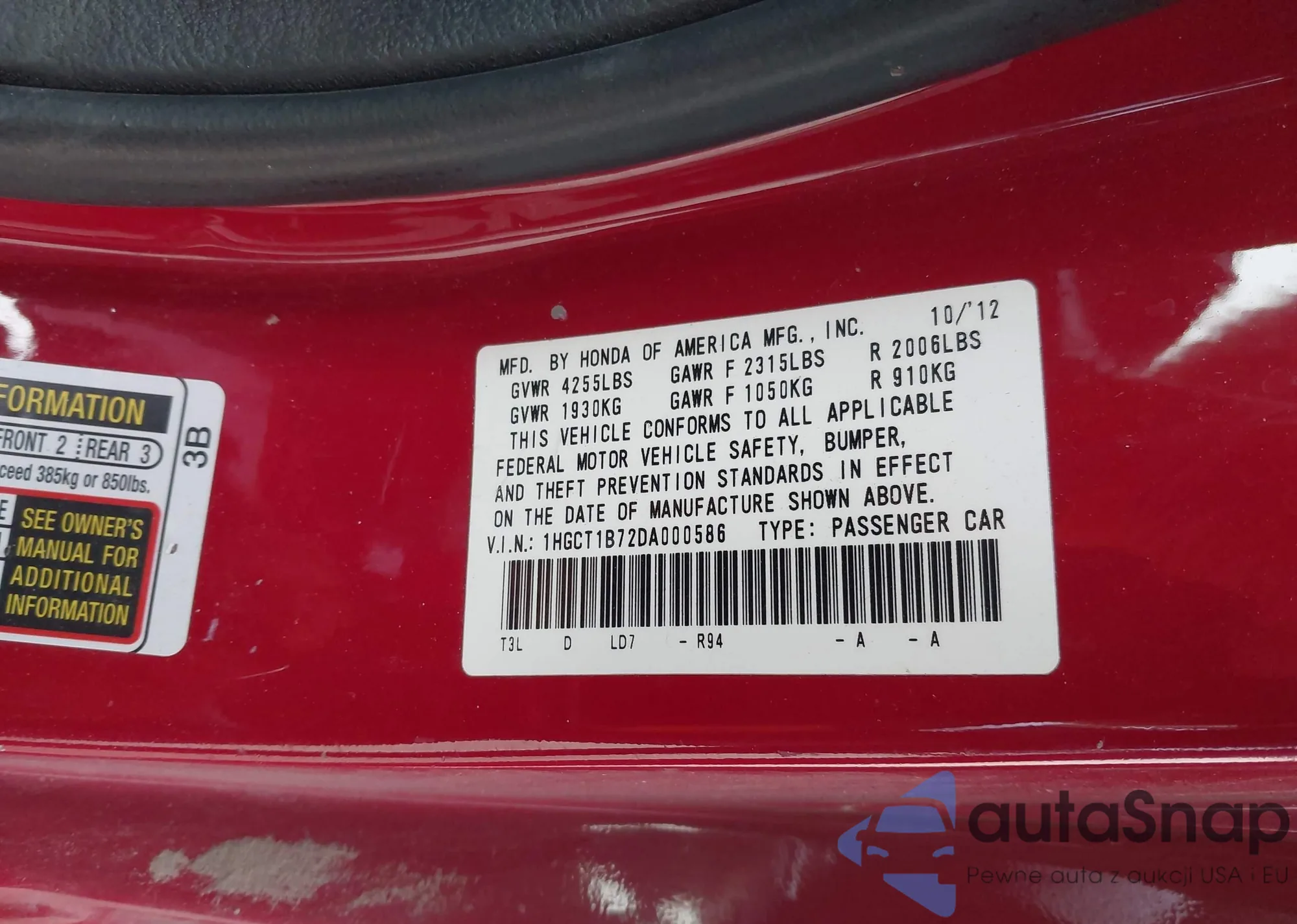 LOT: 44166466 VIN: 1HGCT1B72DA000586