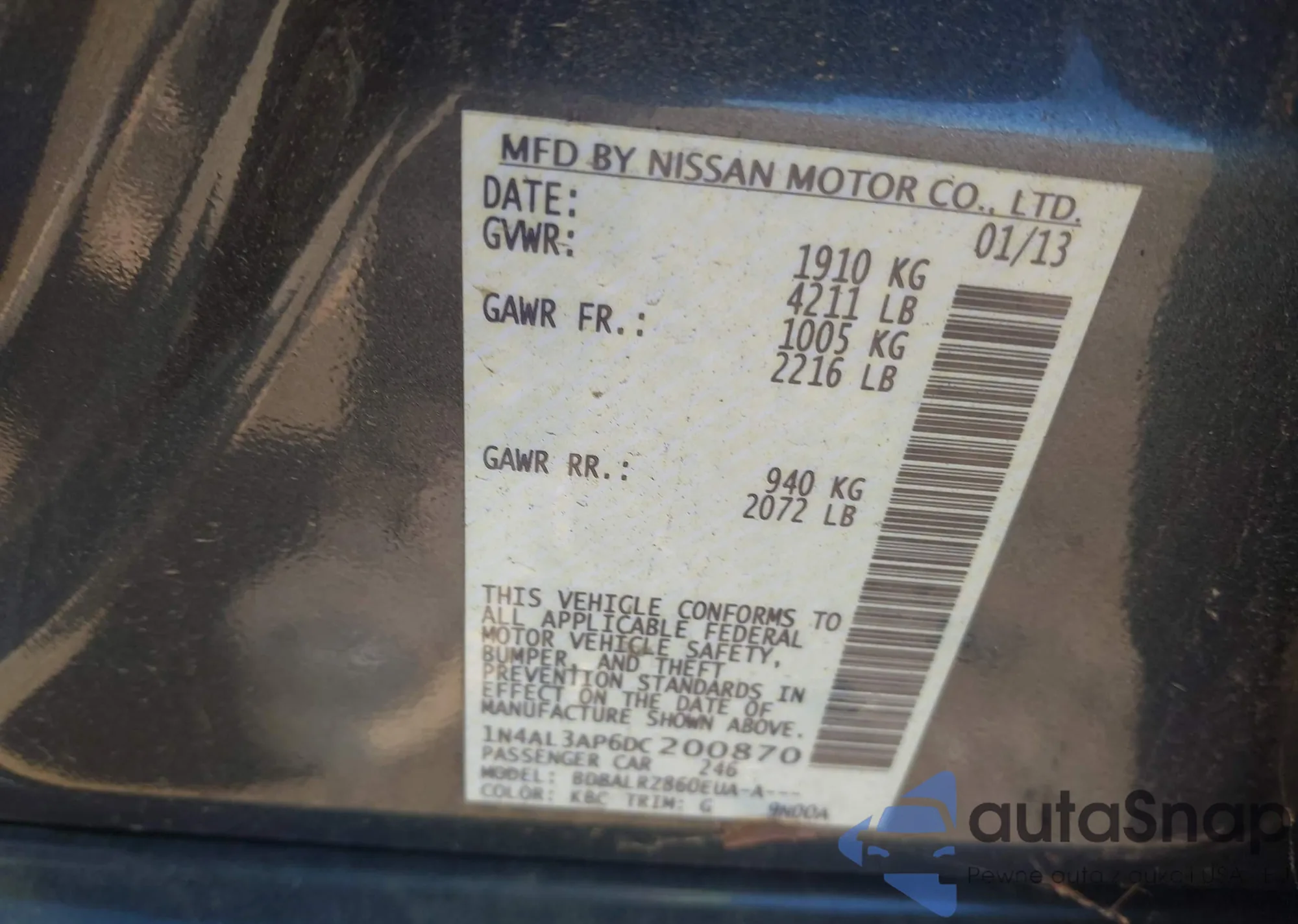 • VIN 3N1AB7AP7KY318230