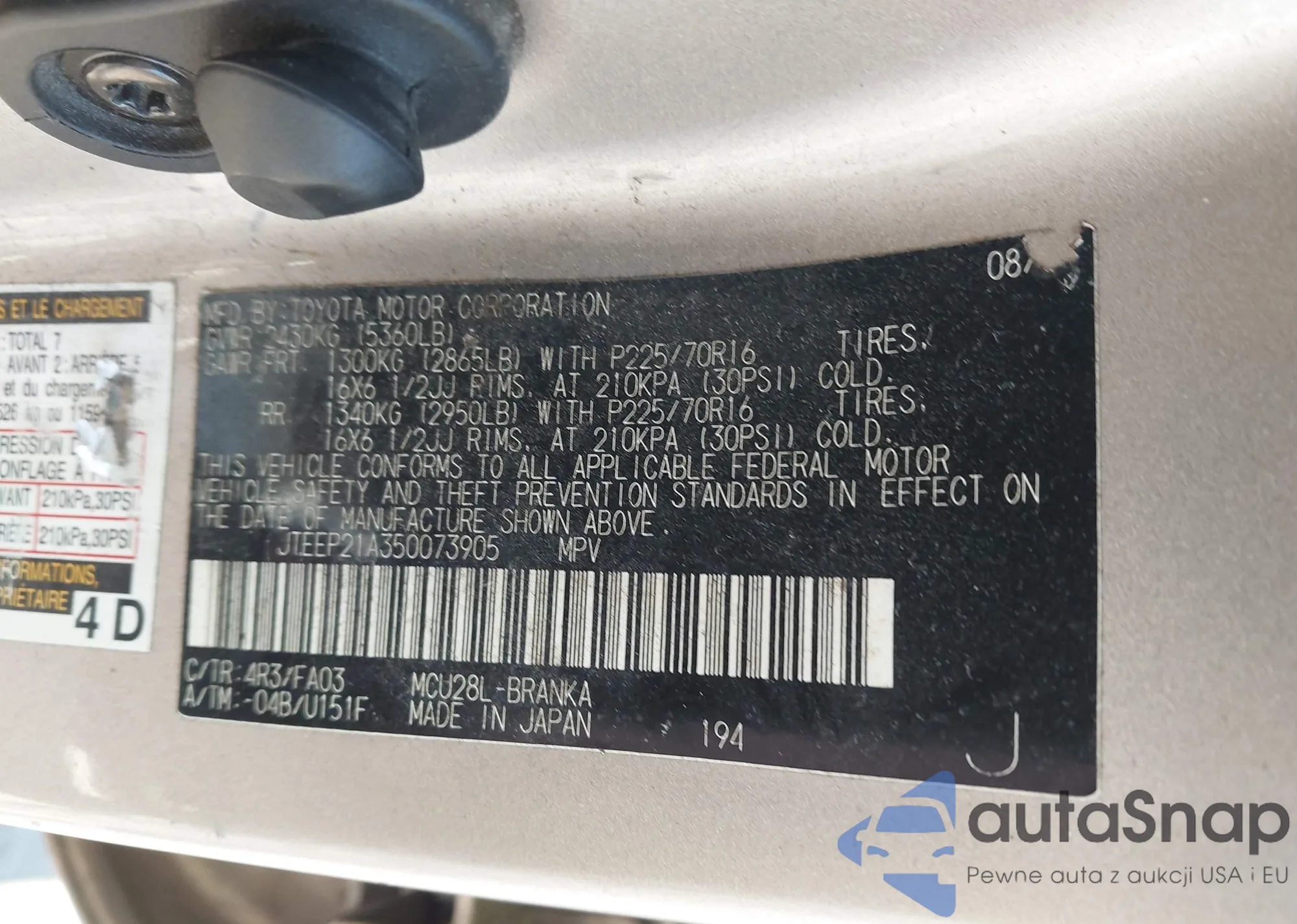 • VIN JTEEP21A350073905