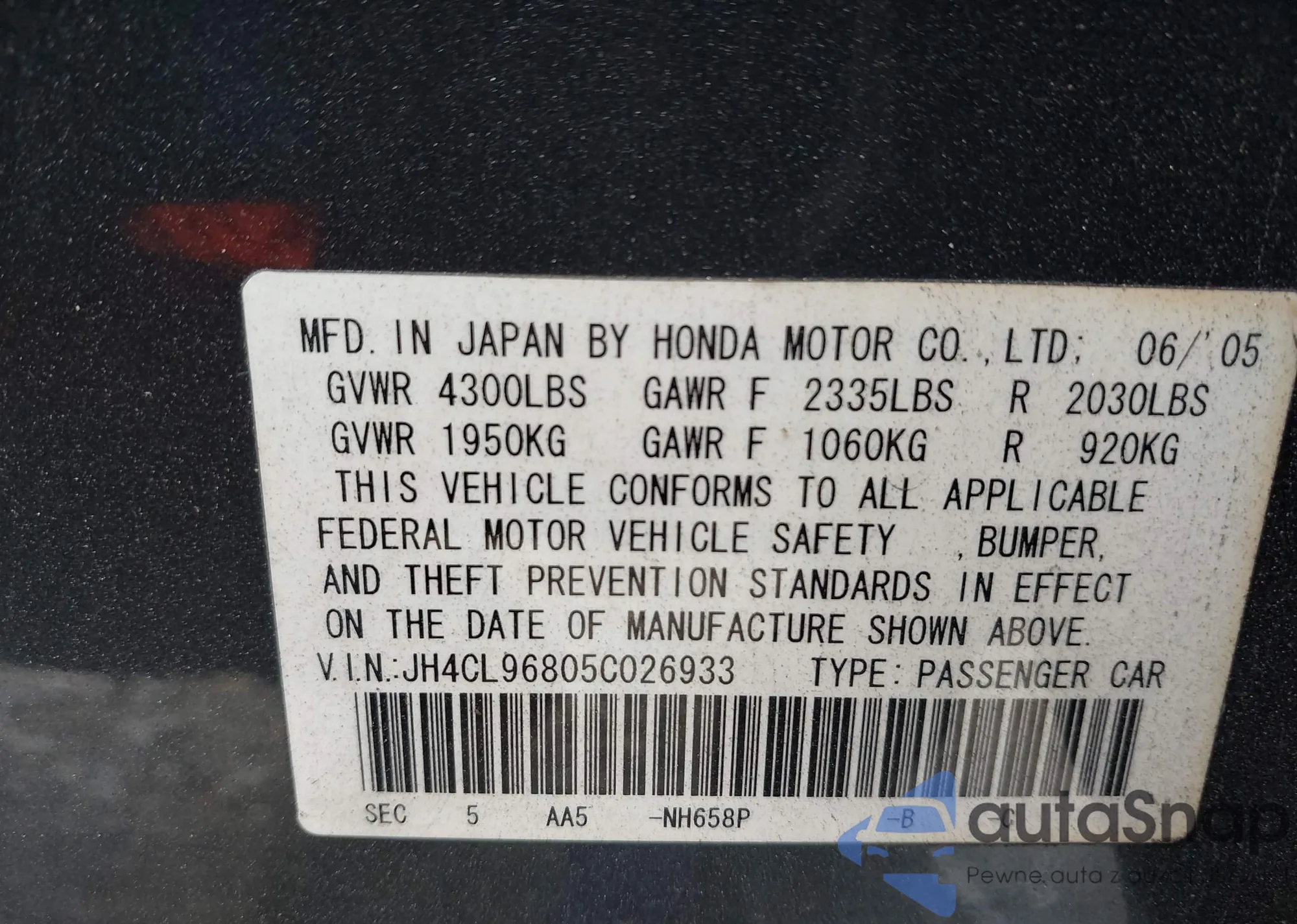 LOT: 44042633 VIN: 2HGFA16319H511676