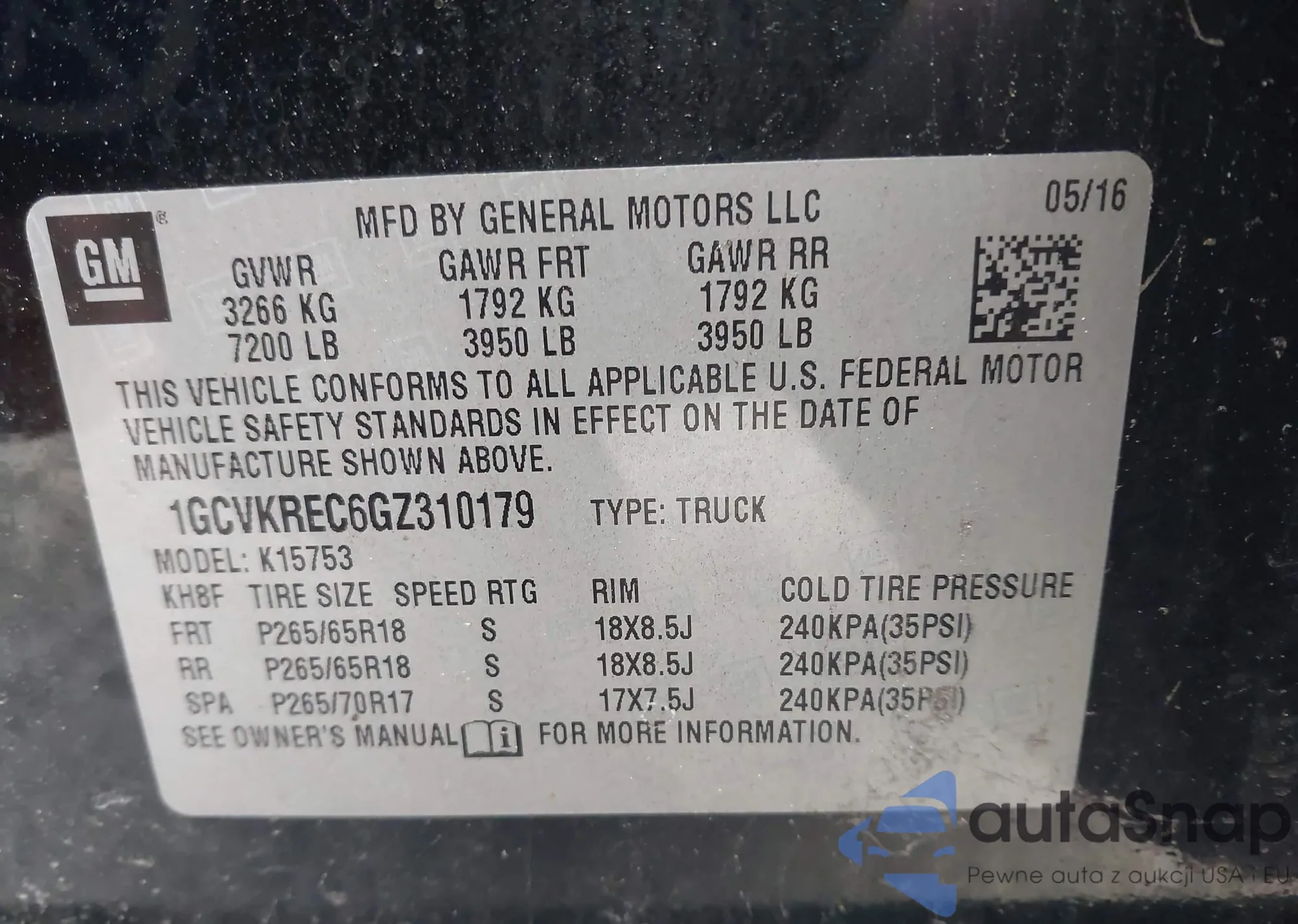 LOT: 44068707 VIN: 1GCVKREC6GZ310179