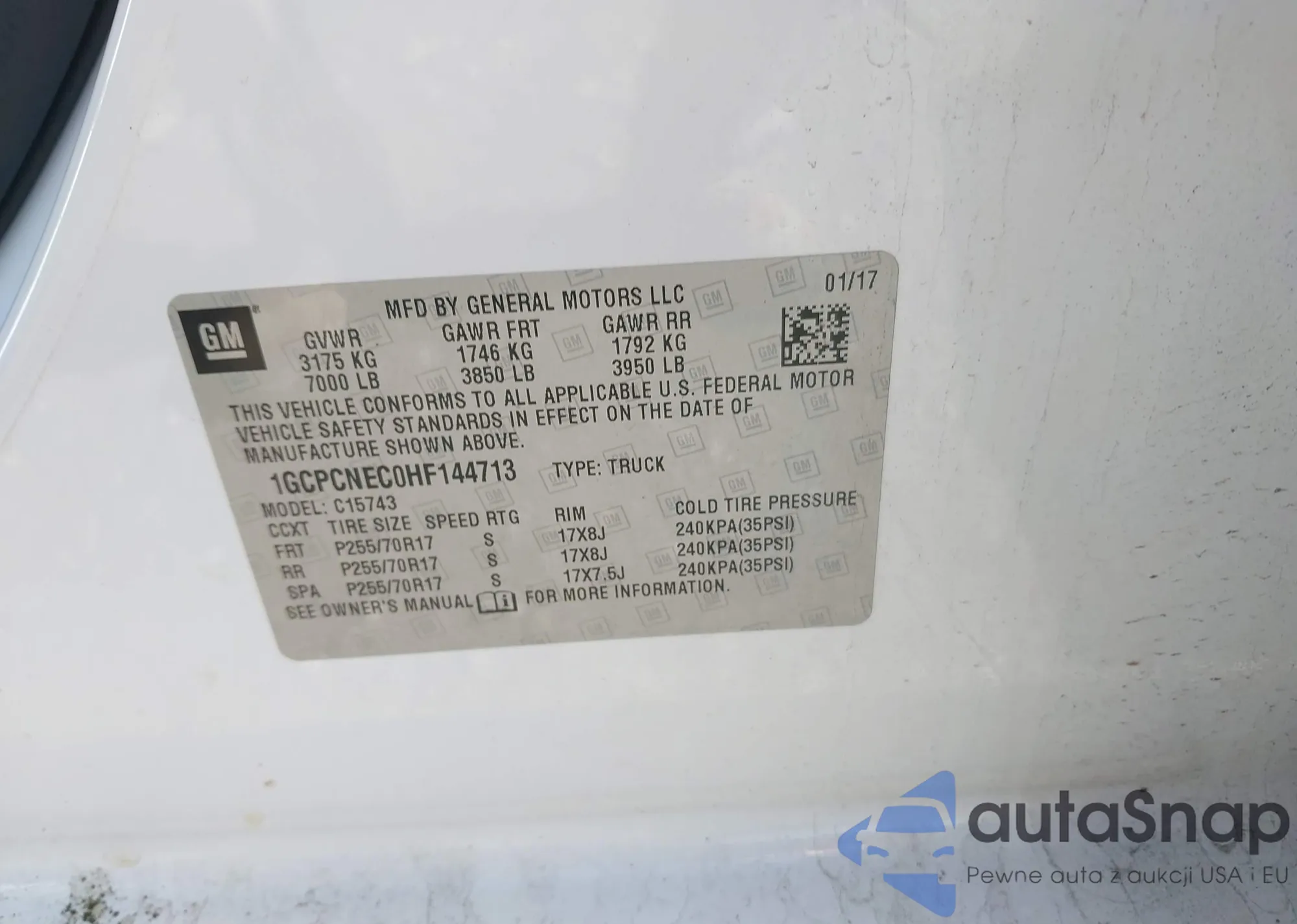 LOT: 44272536 VIN: 1GCPCNEC0HF144713