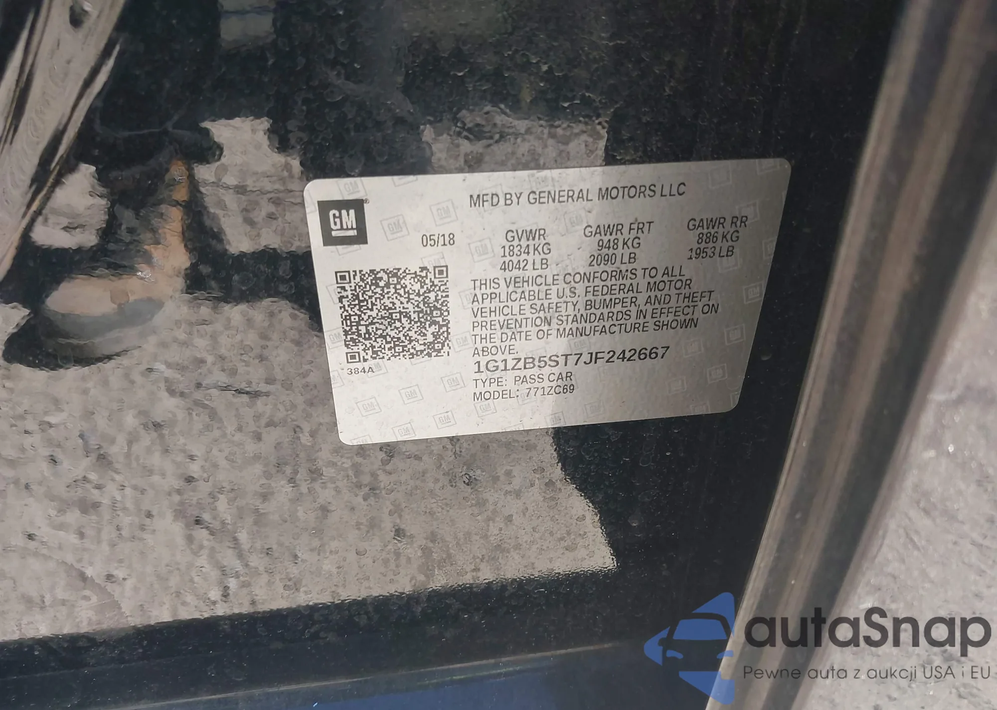 LOT: 43607996 VIN: 5XXGU4L32JG211927