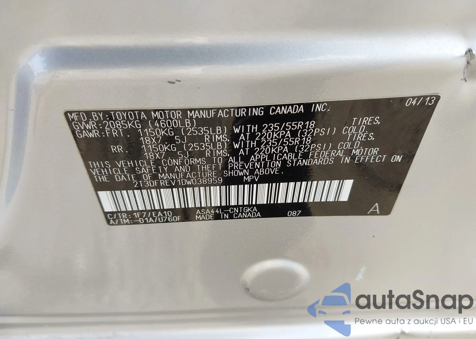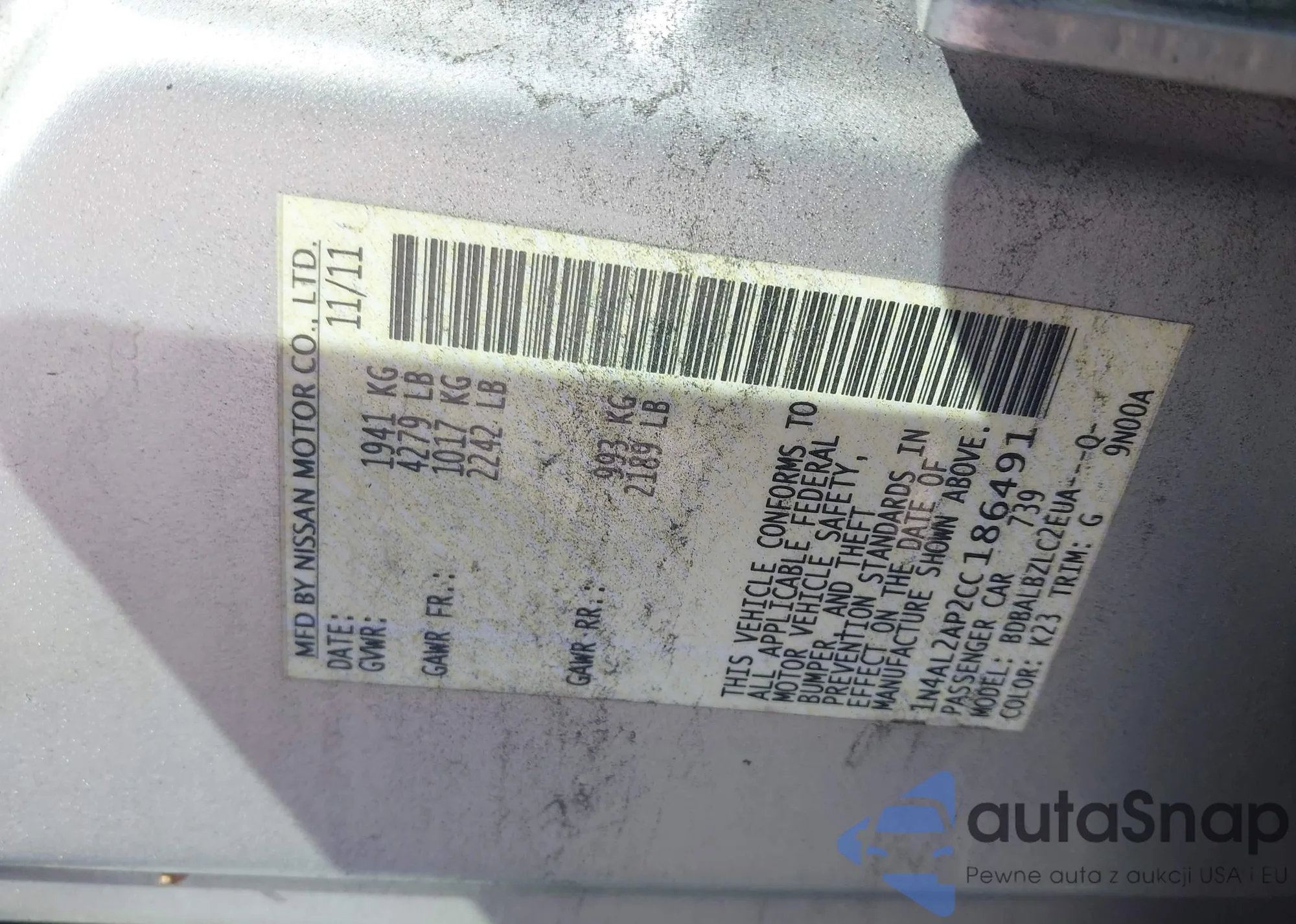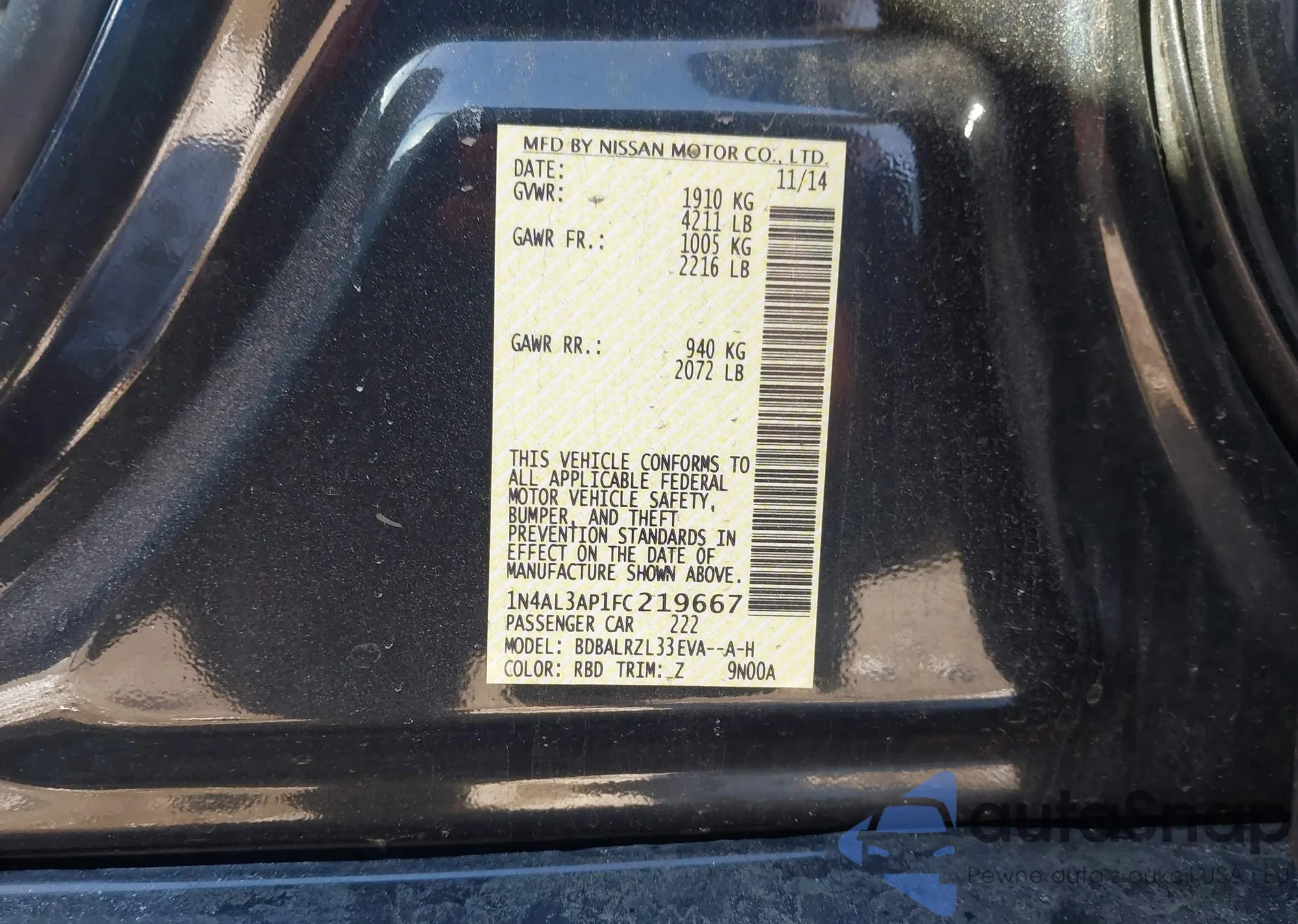 • VIN 1N4AL3AP1FC219667