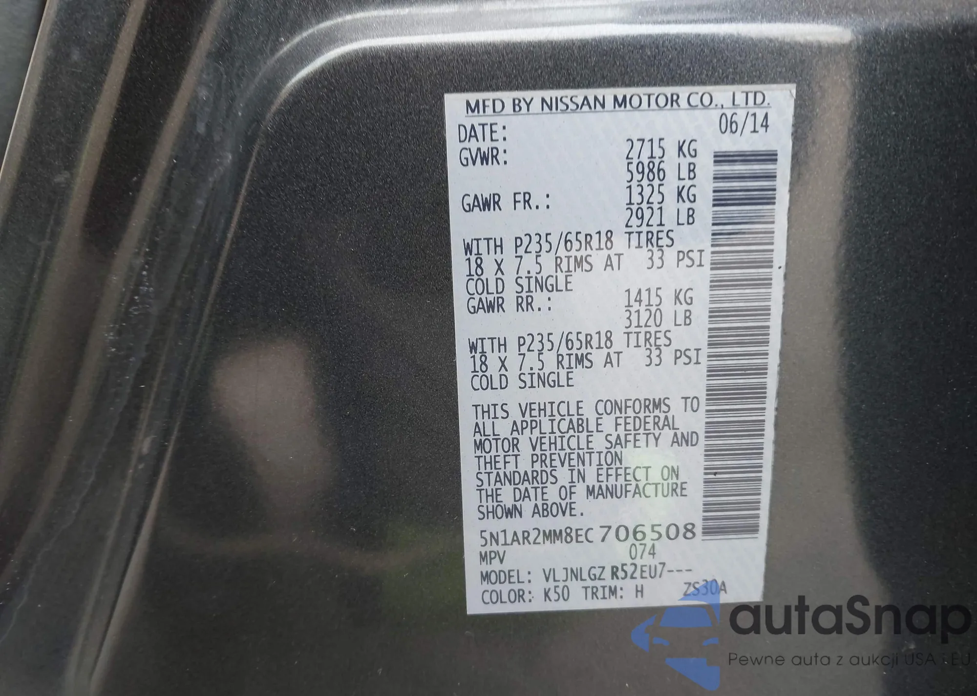 • VIN 5N1AR2MM8EC706508