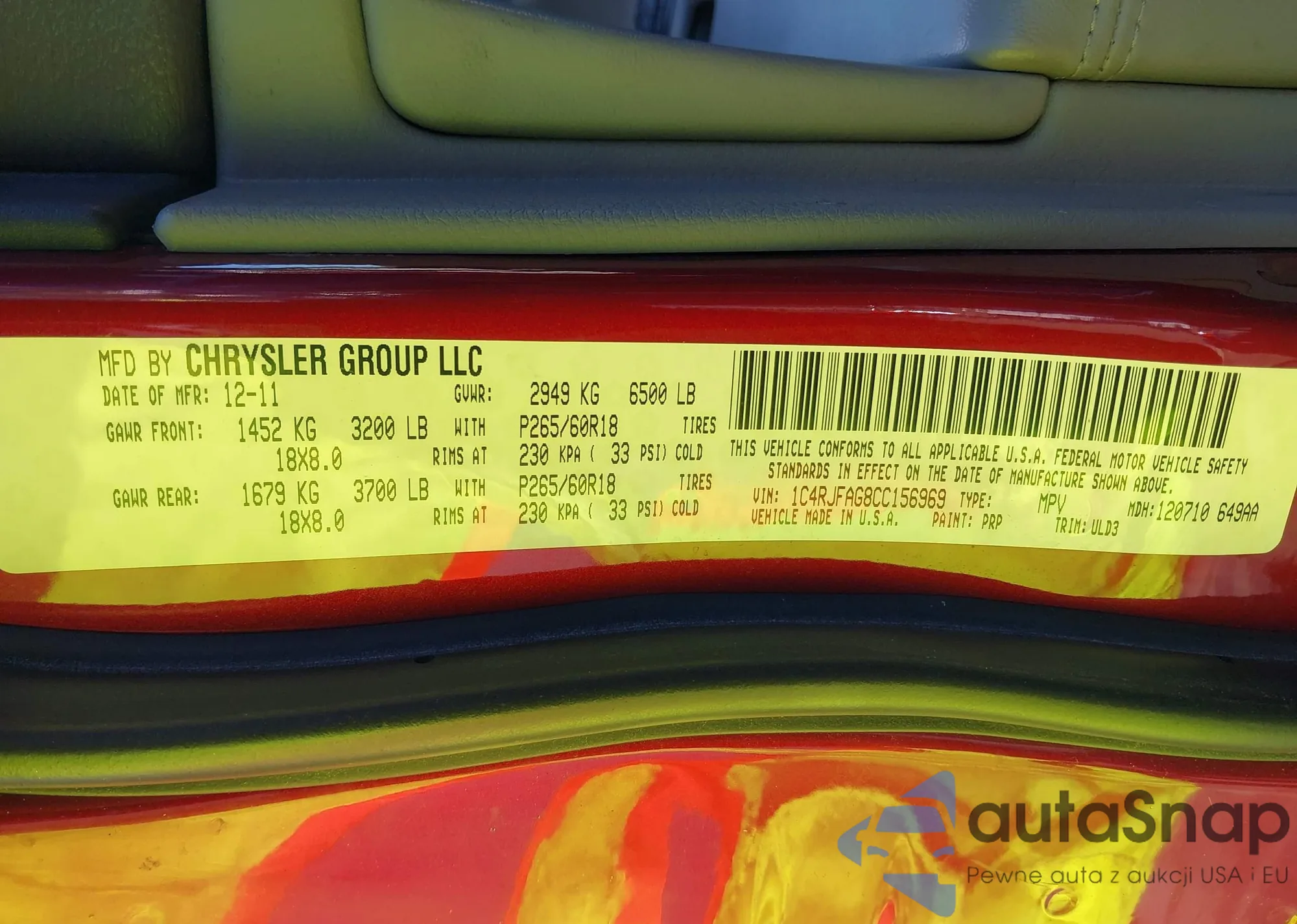 • VIN 1C4RJFAG8CC156969