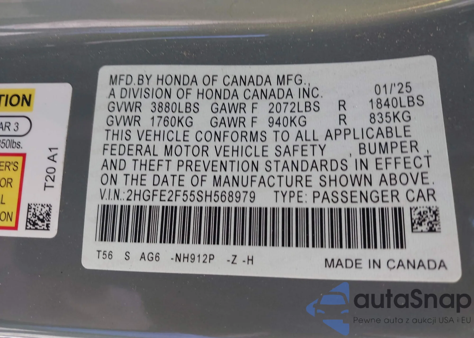 • VIN 5FNRL5H62GB162776