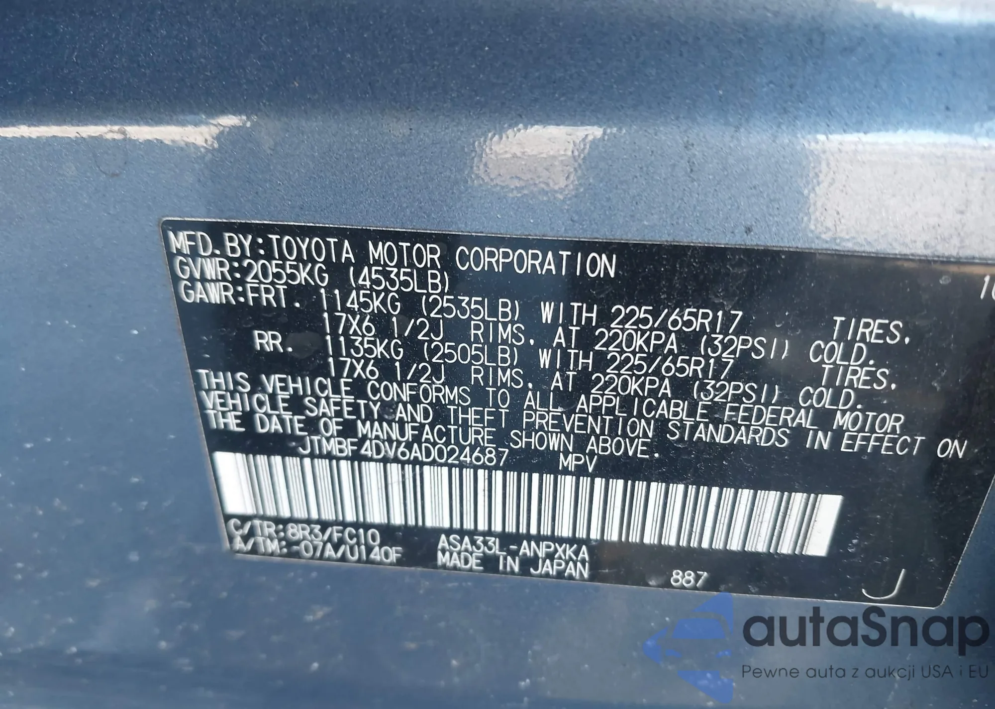 • VIN JTMBF4DV6AD024687