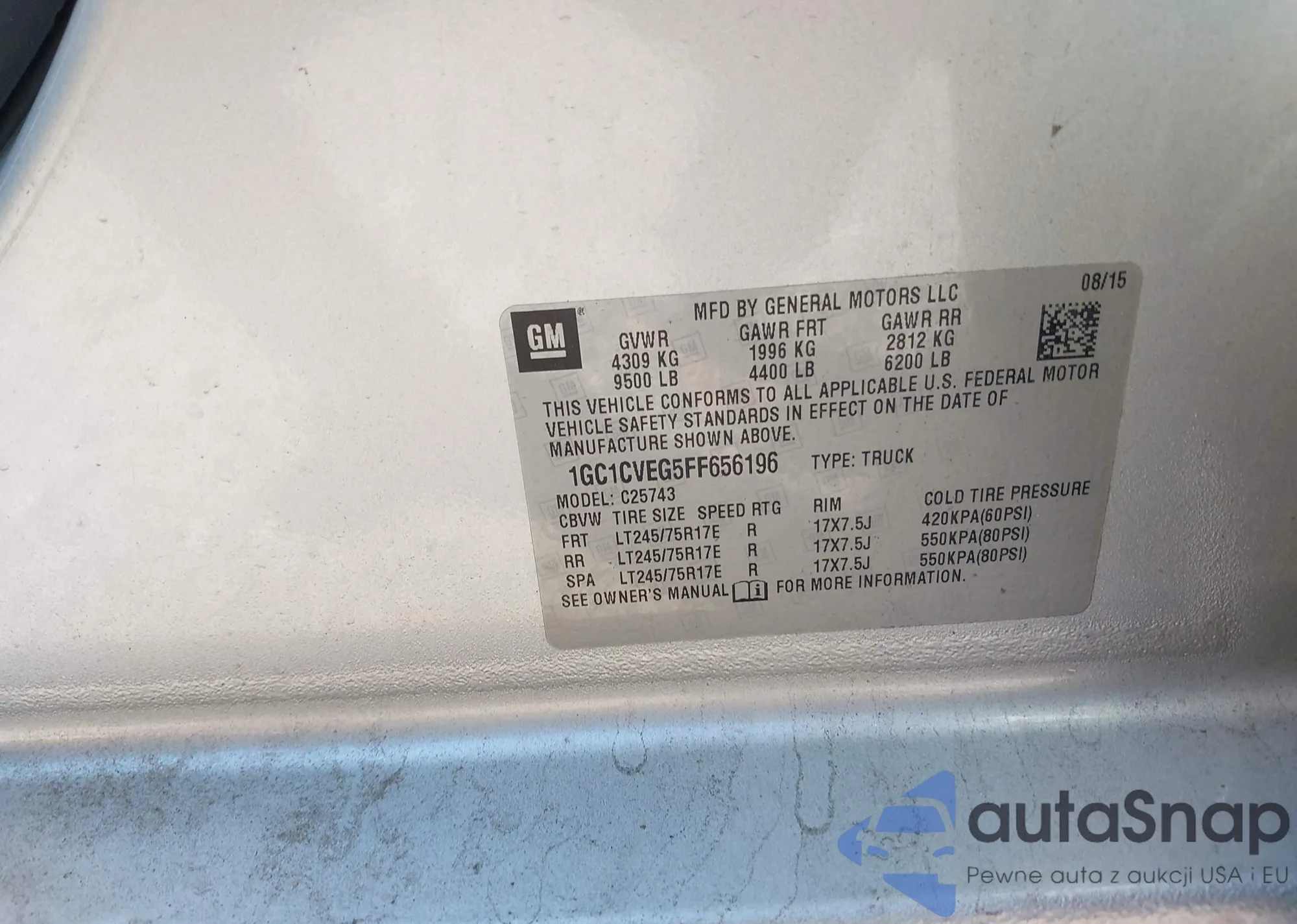 • VIN 1GC1CVEG5FF656196