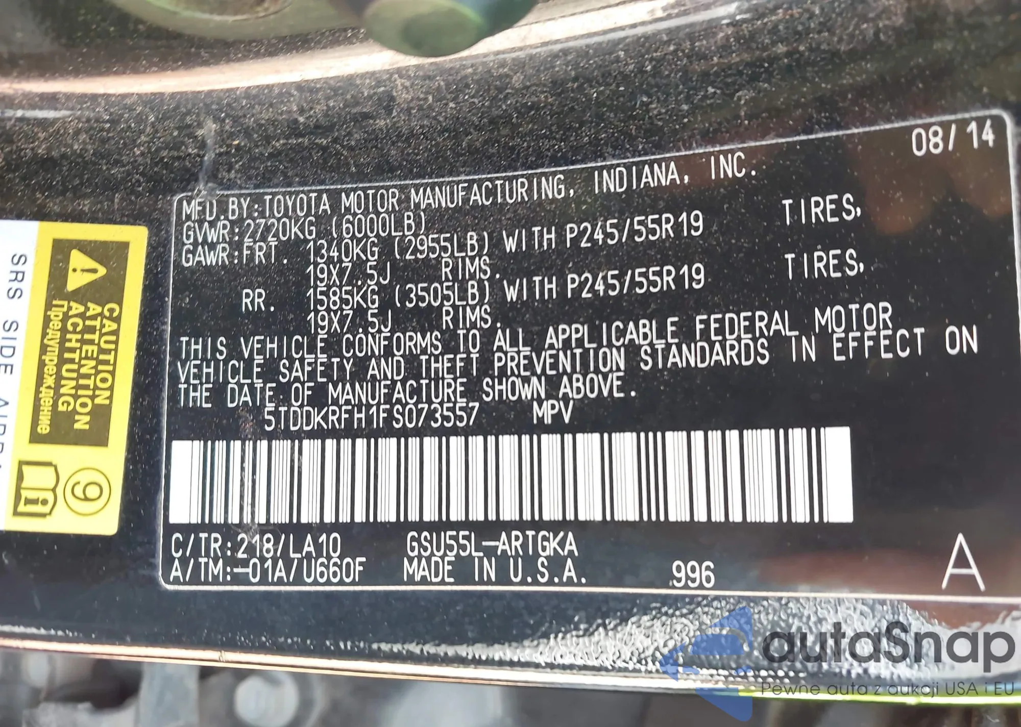 LOT: 43950903 VIN: 7FARS5H87SE001731