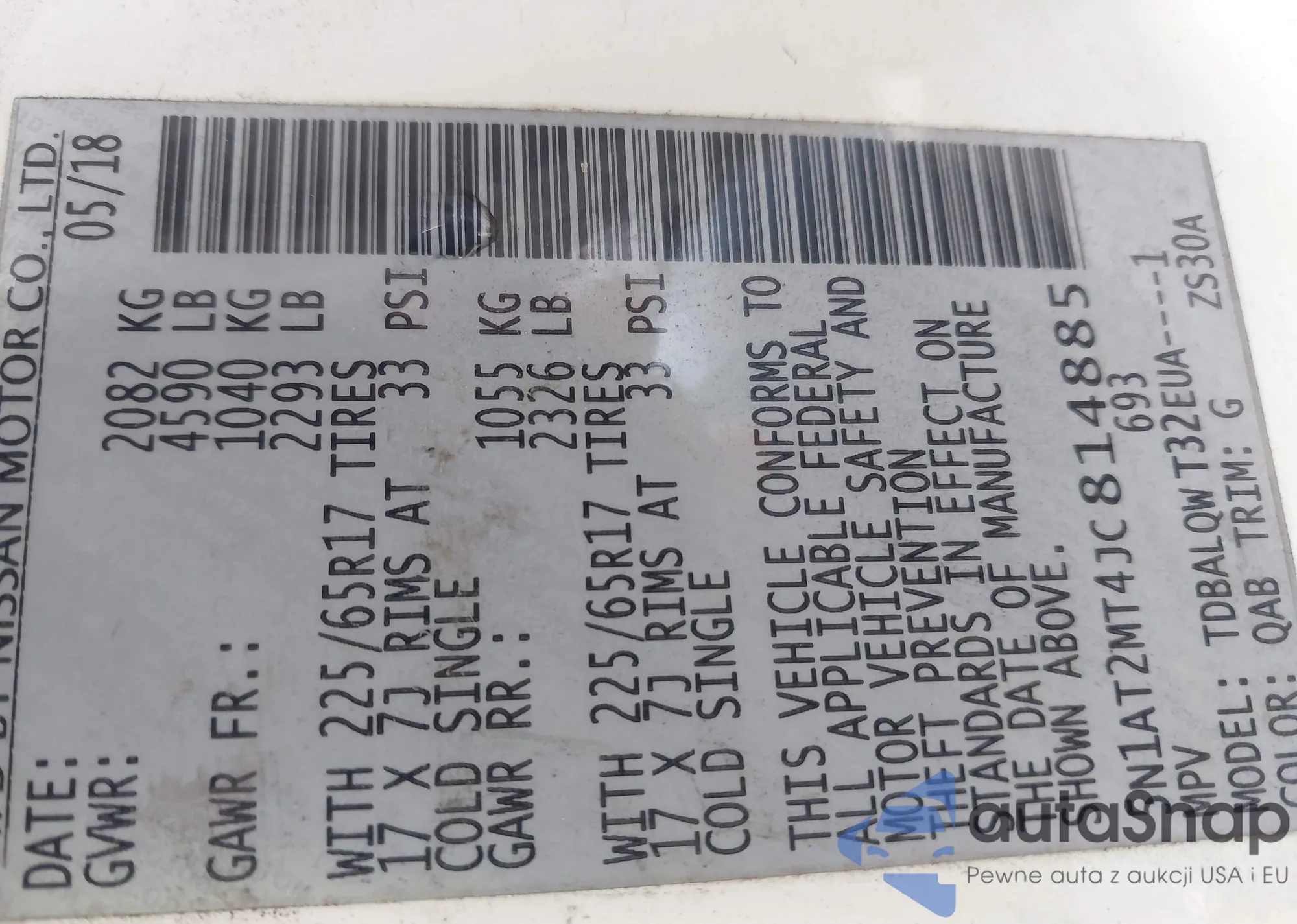 LOT: 43929810 VIN: 5N1AT2MT4JC814885