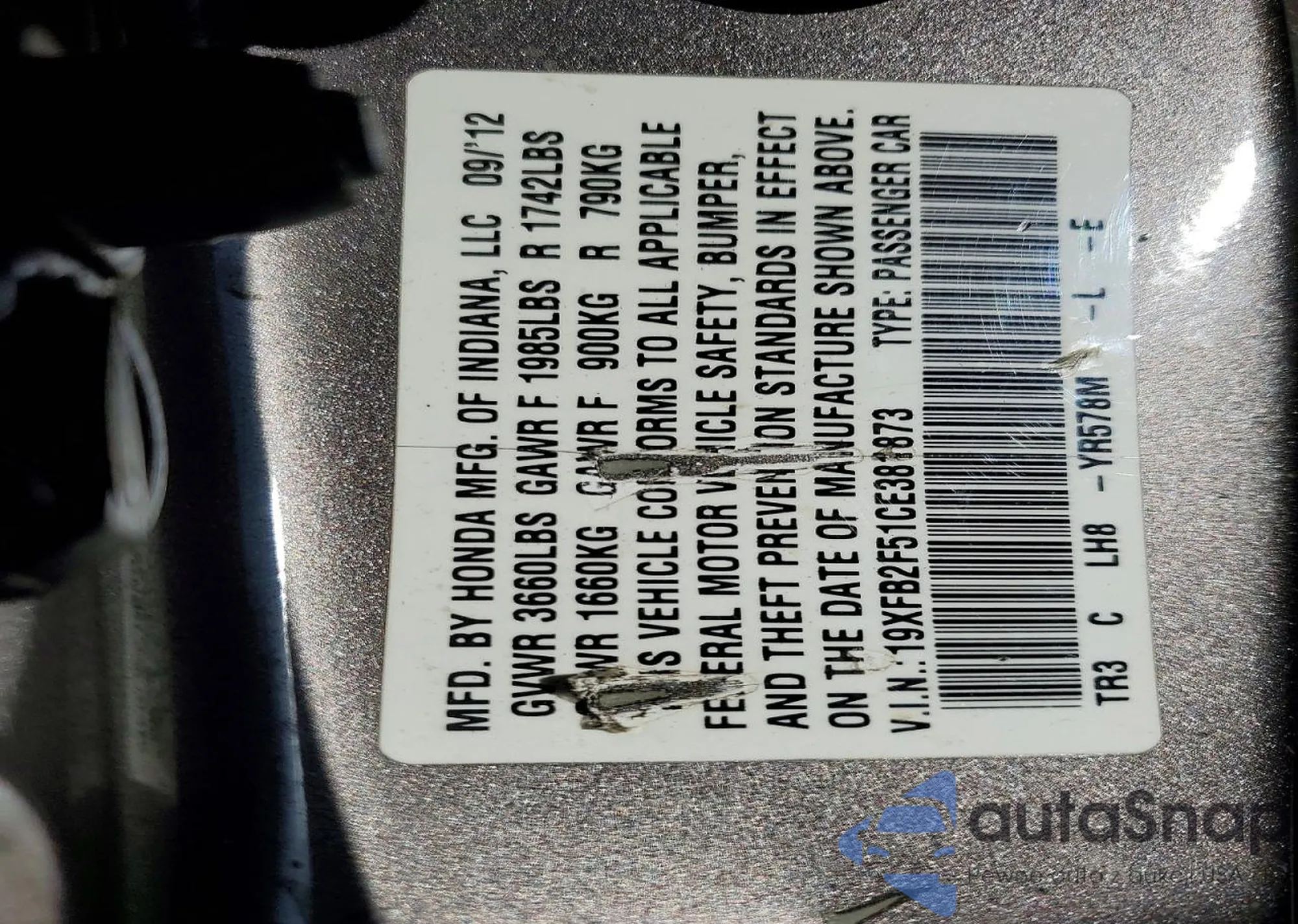 • VIN 4T1BD1FK1CU042178