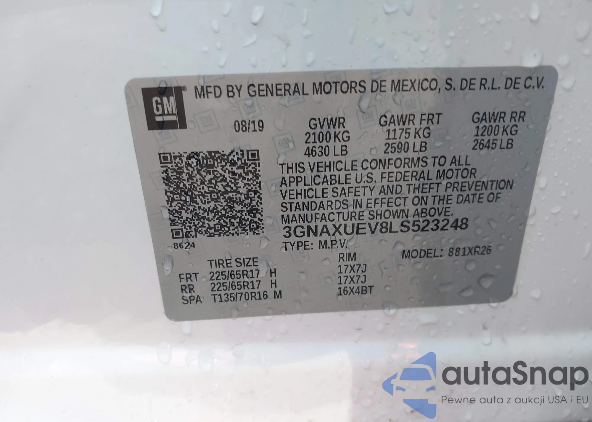 LOT: 43229351 VIN: 3GNAXUEV8LS523248