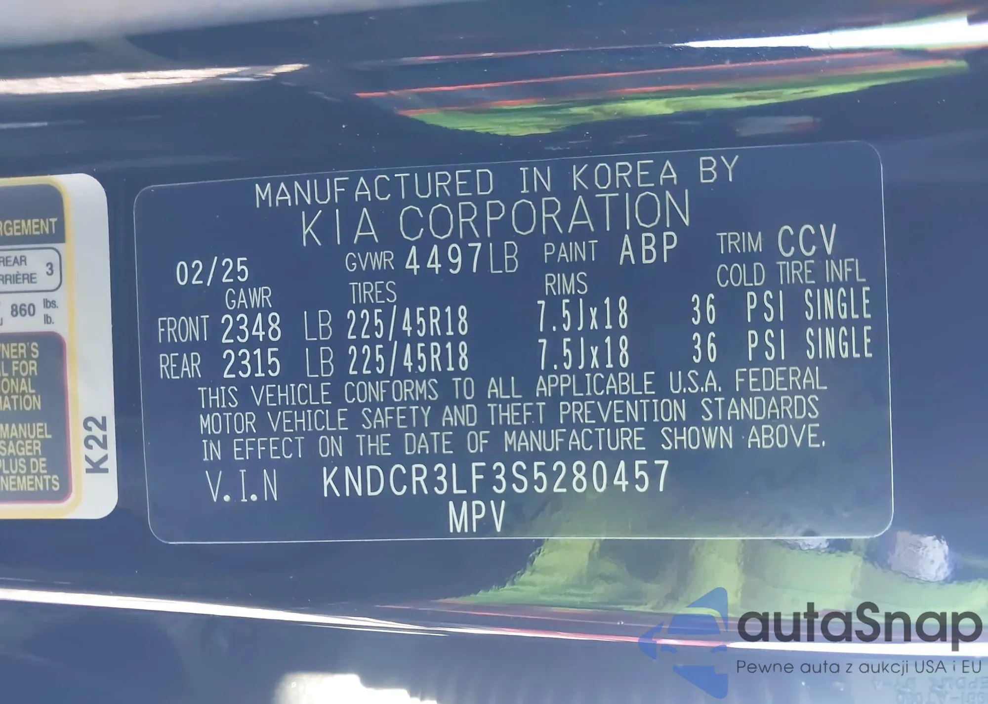 • VIN KNDCR3LF3S5280457
