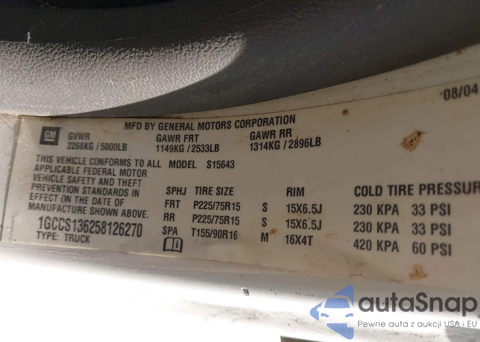 LOT: 44032181 VIN: 1GCCS136258126270