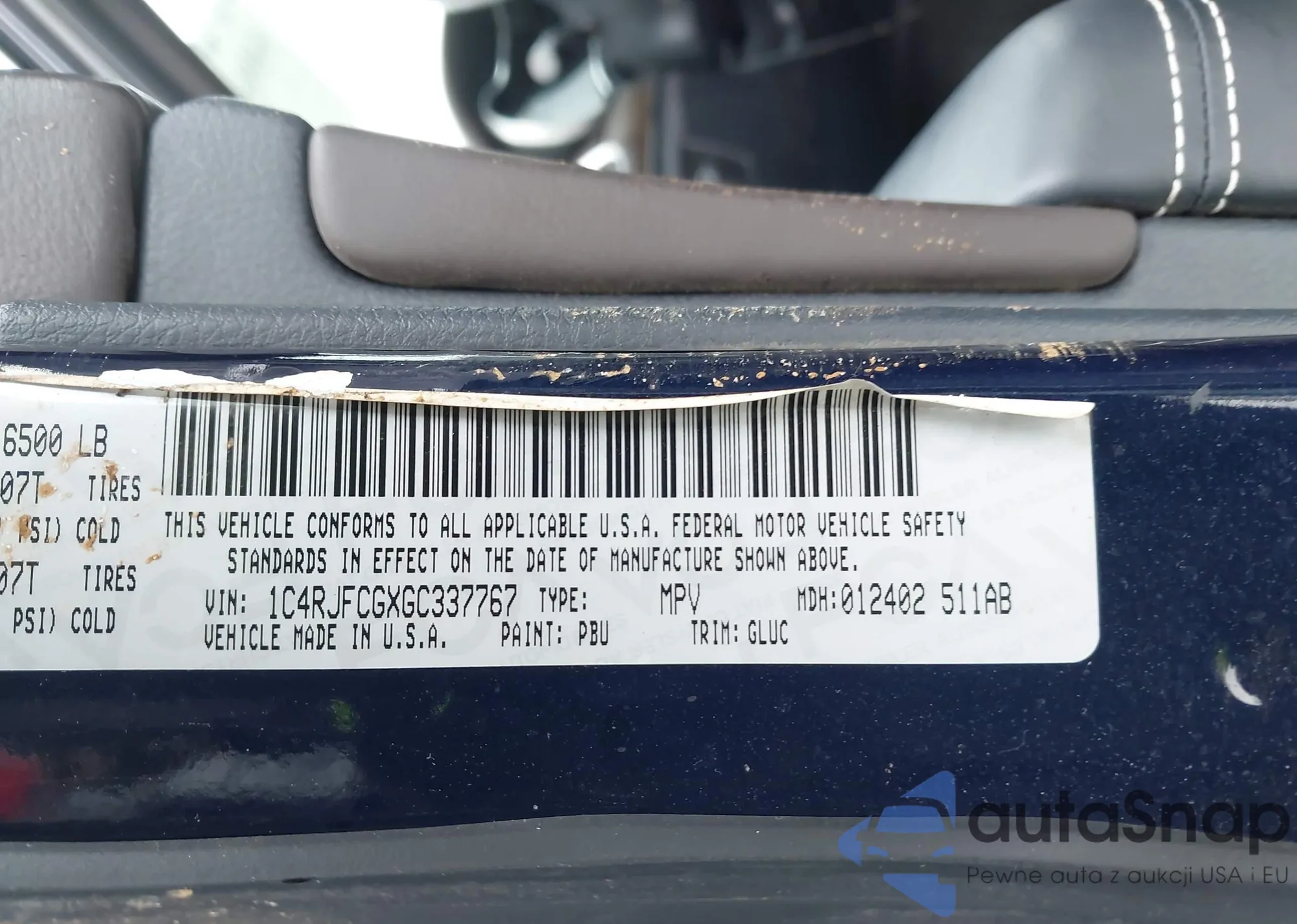 • VIN 1C4RJFDJ7GC416999