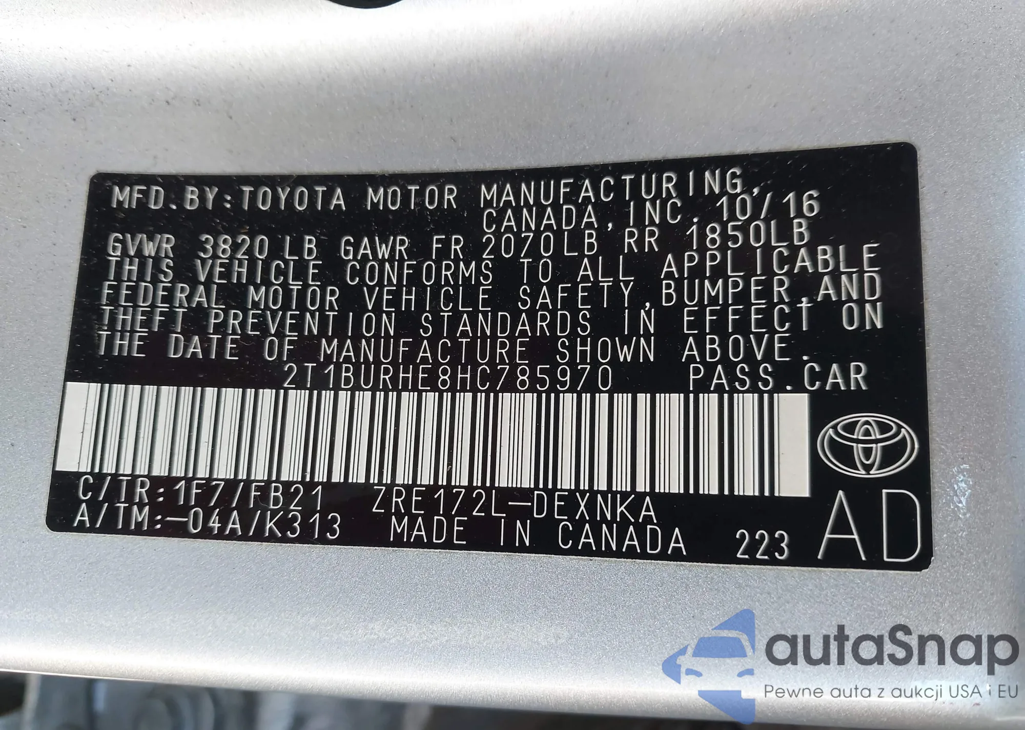 • VIN 4T3BK3BB6AU029681