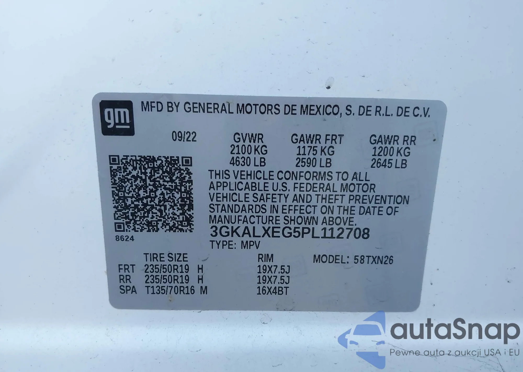 • VIN 3GKALXEG5PL112708
