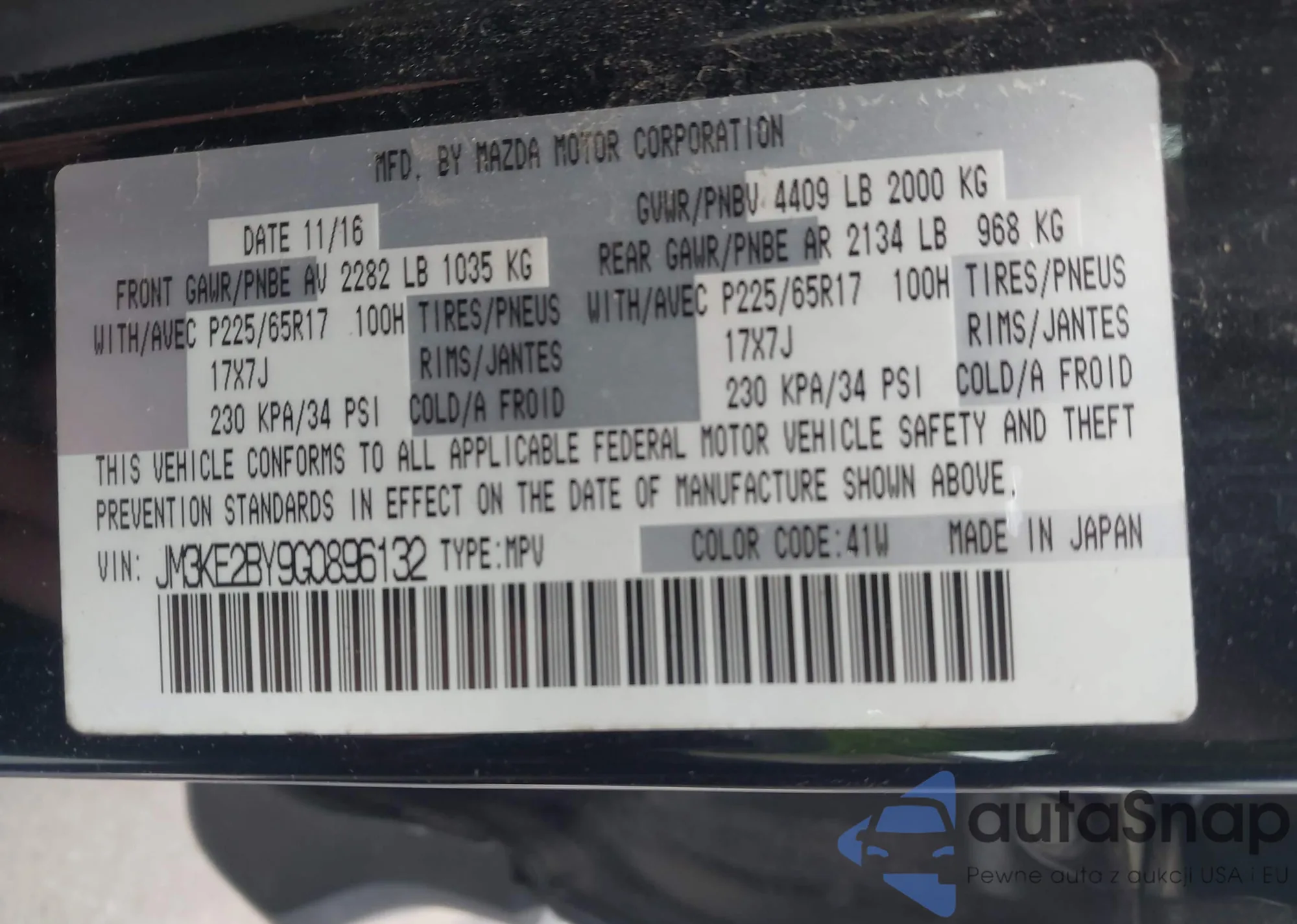 LOT: 44138083 VIN: JM3KE2BY9G0896132